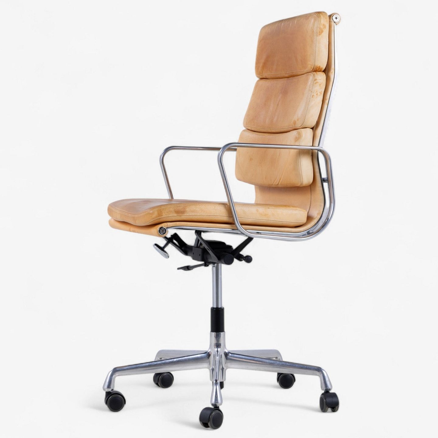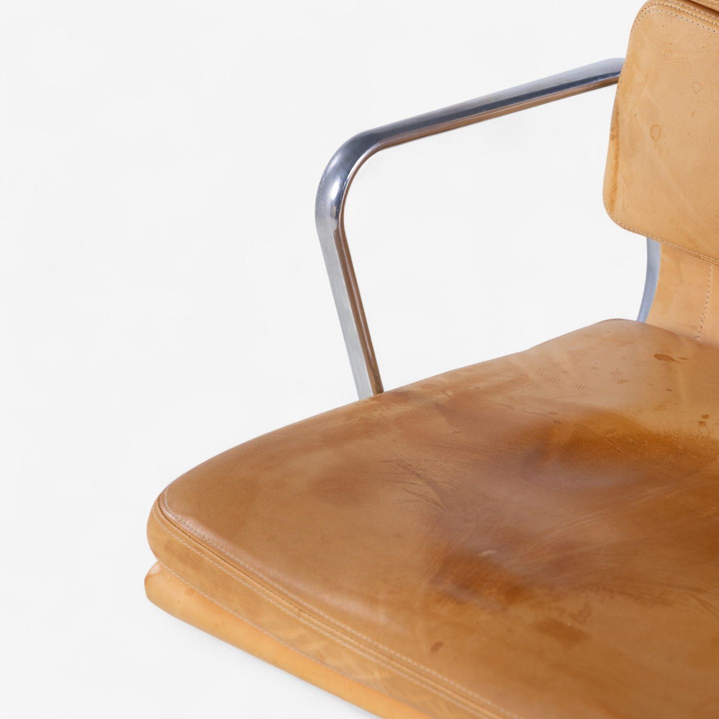 EA 219 - High-back office chair in patinated natural leather on a steel frame. Manufacturer's mark.