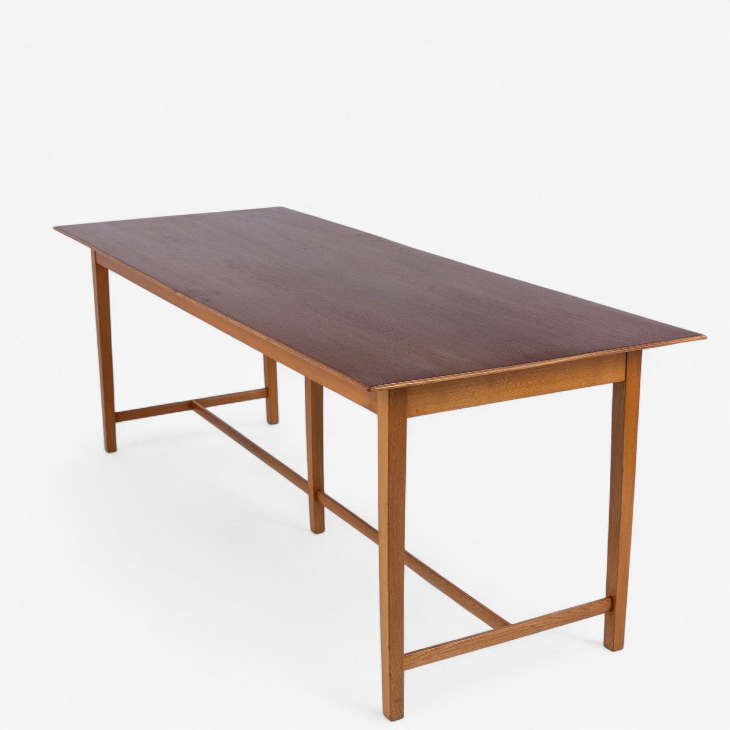 Work table with elm frame and teak top with fluted bottom edge. Made in the 1950s.