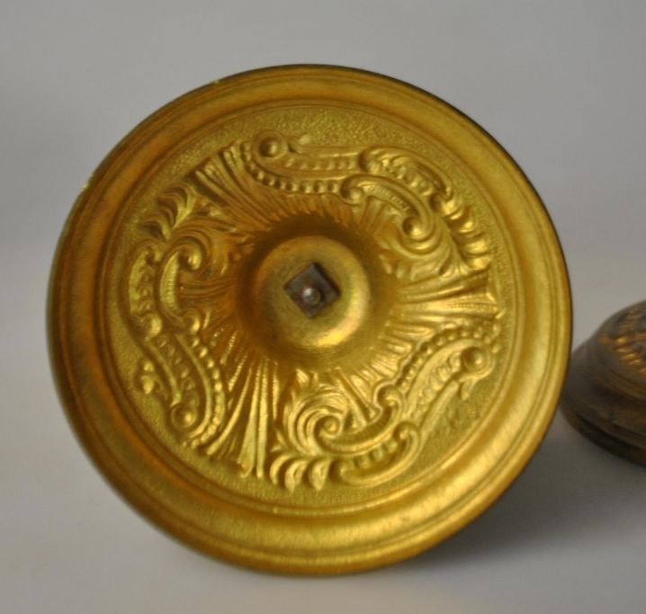 Pair of French candlesticks, 19th century. With decorations of flowers and twists. On a round base. H: 20 cm. Dia: 9.5 cm.Item number: 28255