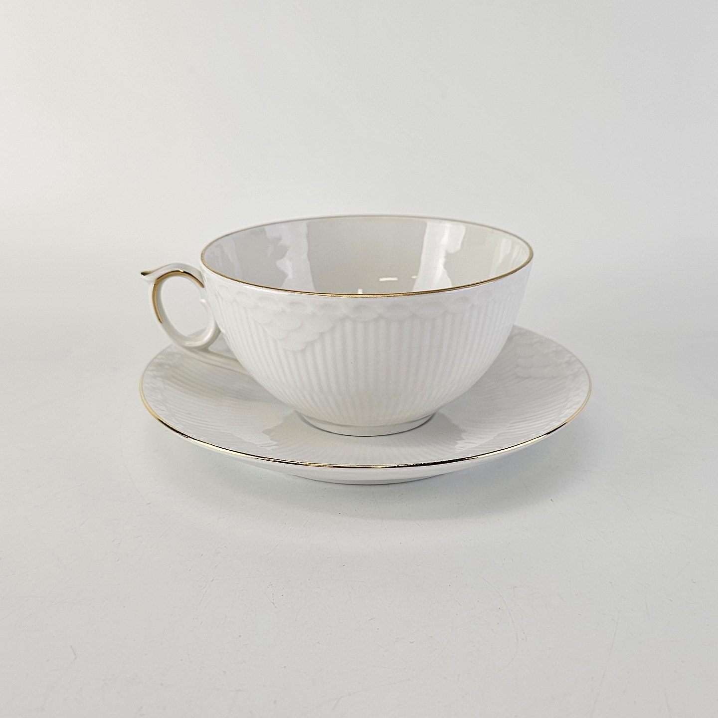 Kop med underkop i porcelæn fra stellet Hvid Halvblonde
