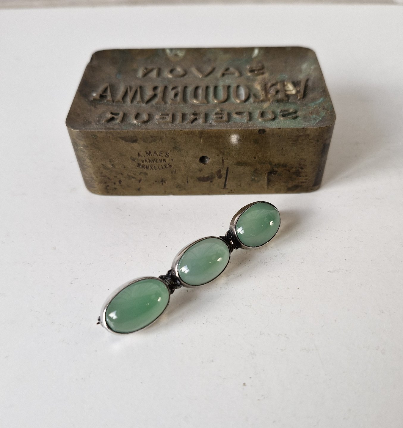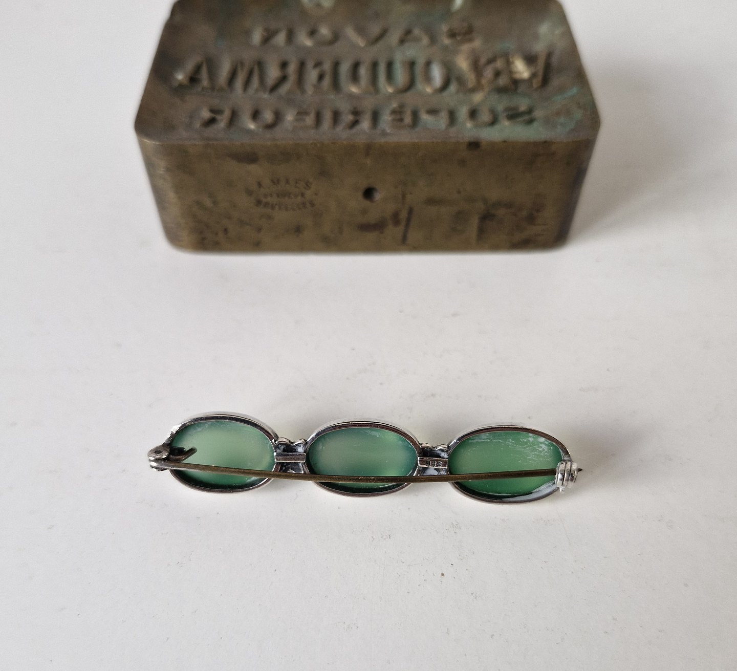 Silver brooch adorned with three cabochon cut agates.Stamped 935.