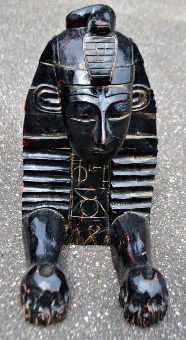 Pair of large decorative black-painted wooden sphinxes, 20th century, Egypt.