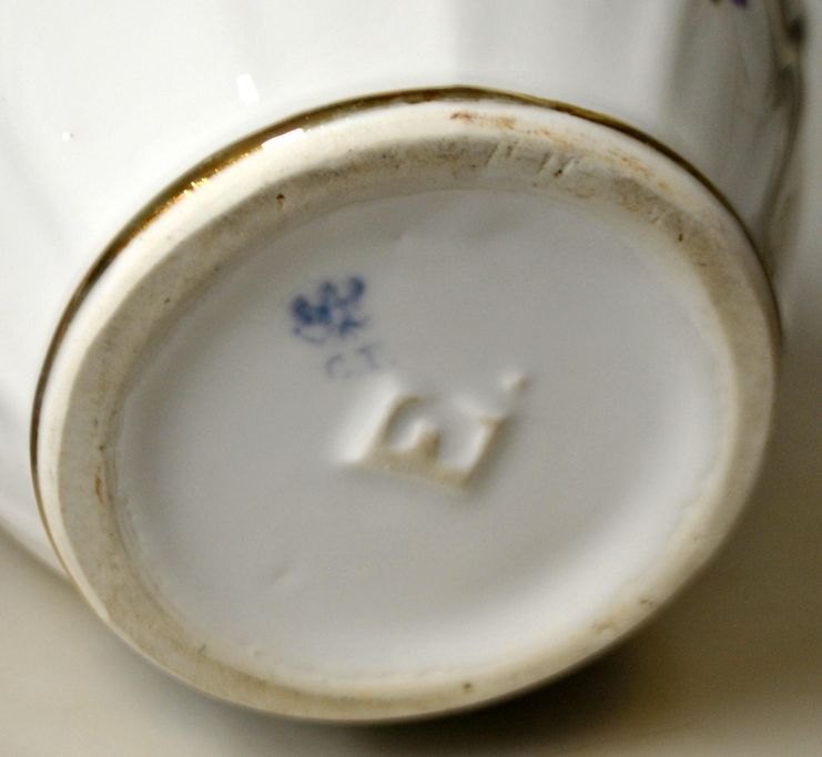 Porcelain lion chocolate jug, CT Altwasser, 19th century. Germany. Decoration in the form of flowers in transfer technique. Stamped. With gilding. Without lid. H: 24 cm.Item number: 28278
