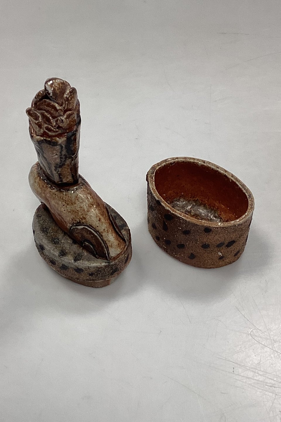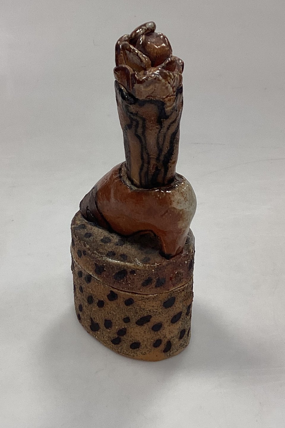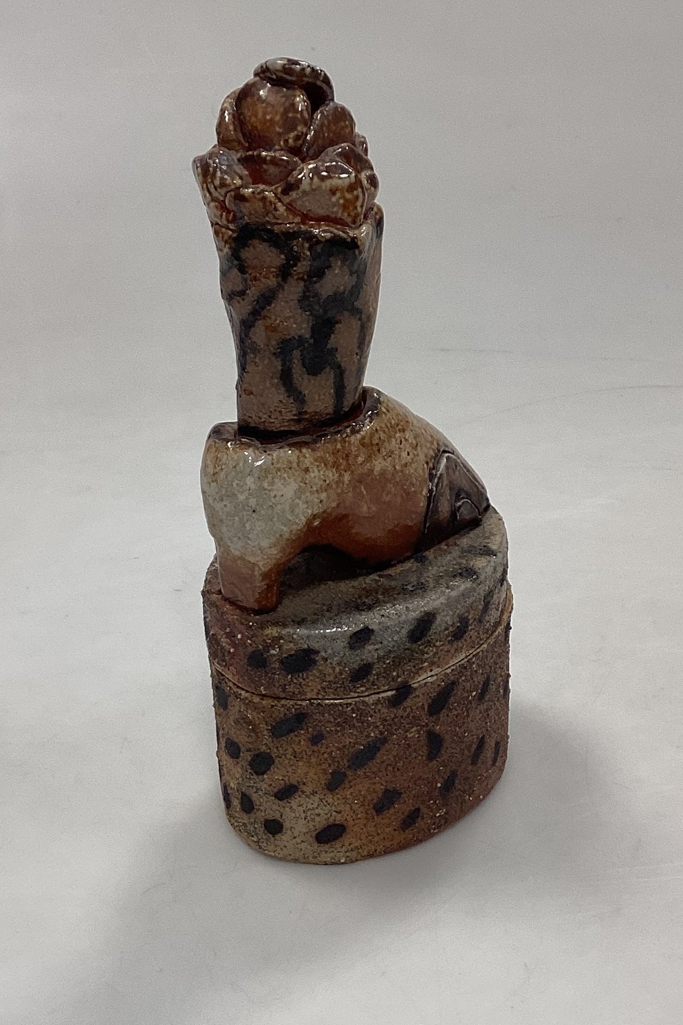 Sten Lykke Madsen Unika Container of Stoneware from 2005Oval-shaped with Shoe Decoration on the Lid