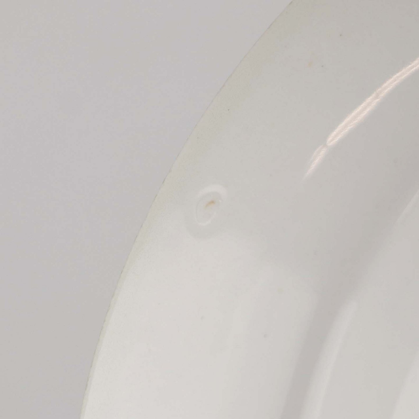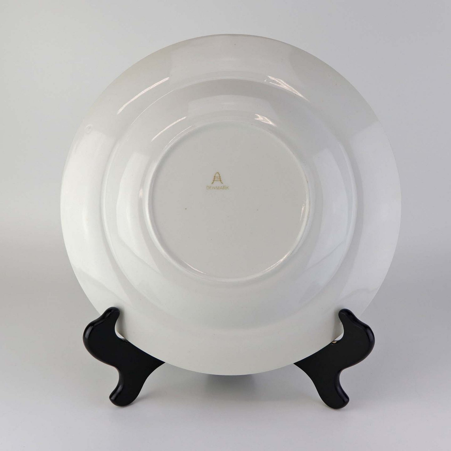 Fremstår med lettere ridser i bunden på tallerkenen samt ujævnhed i fajancen på bagsiden.