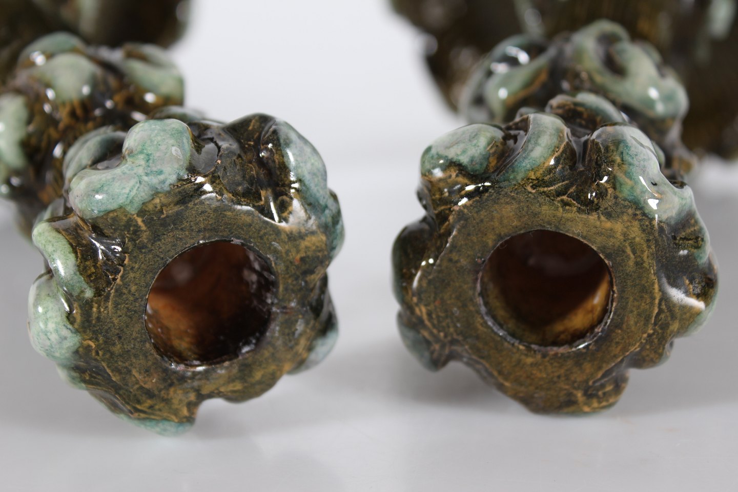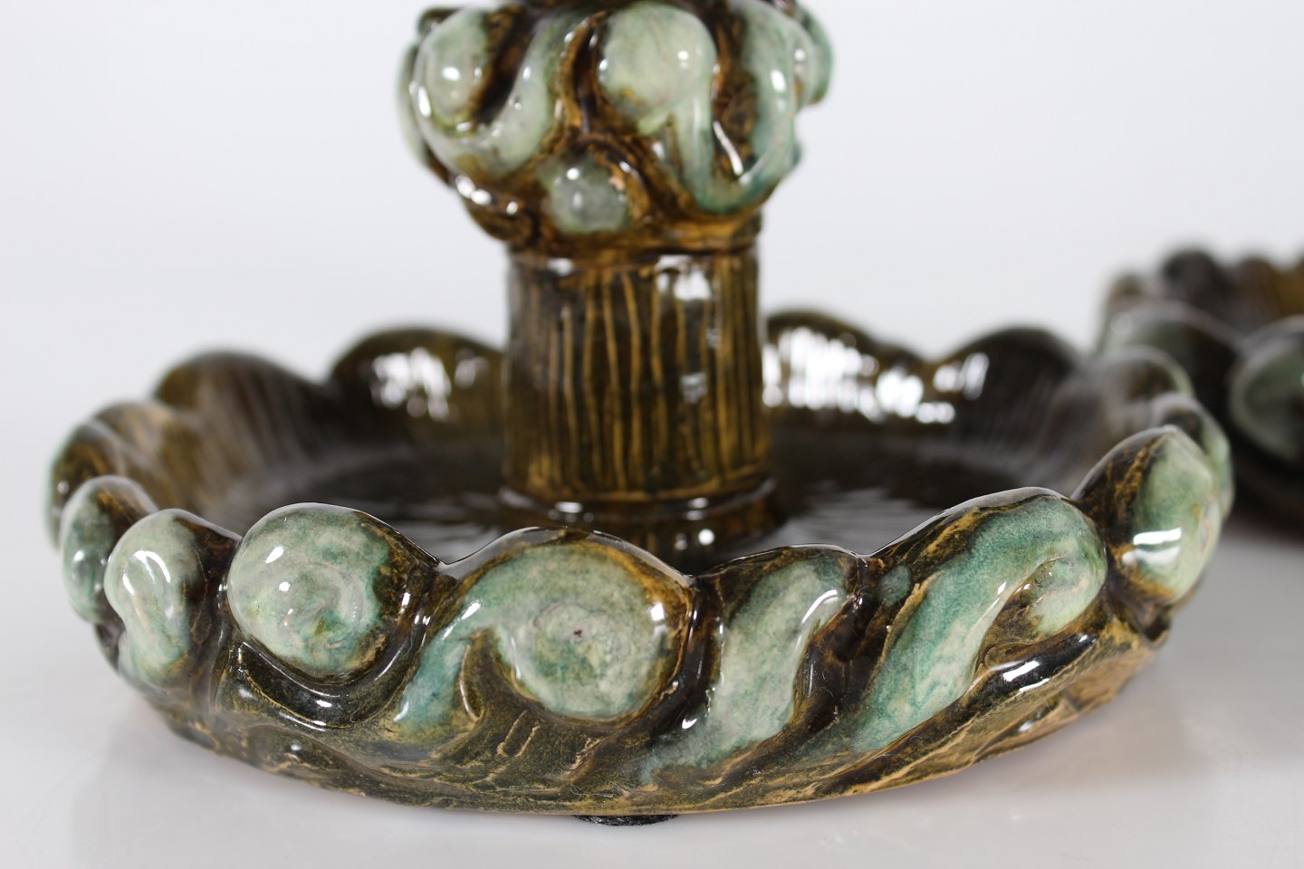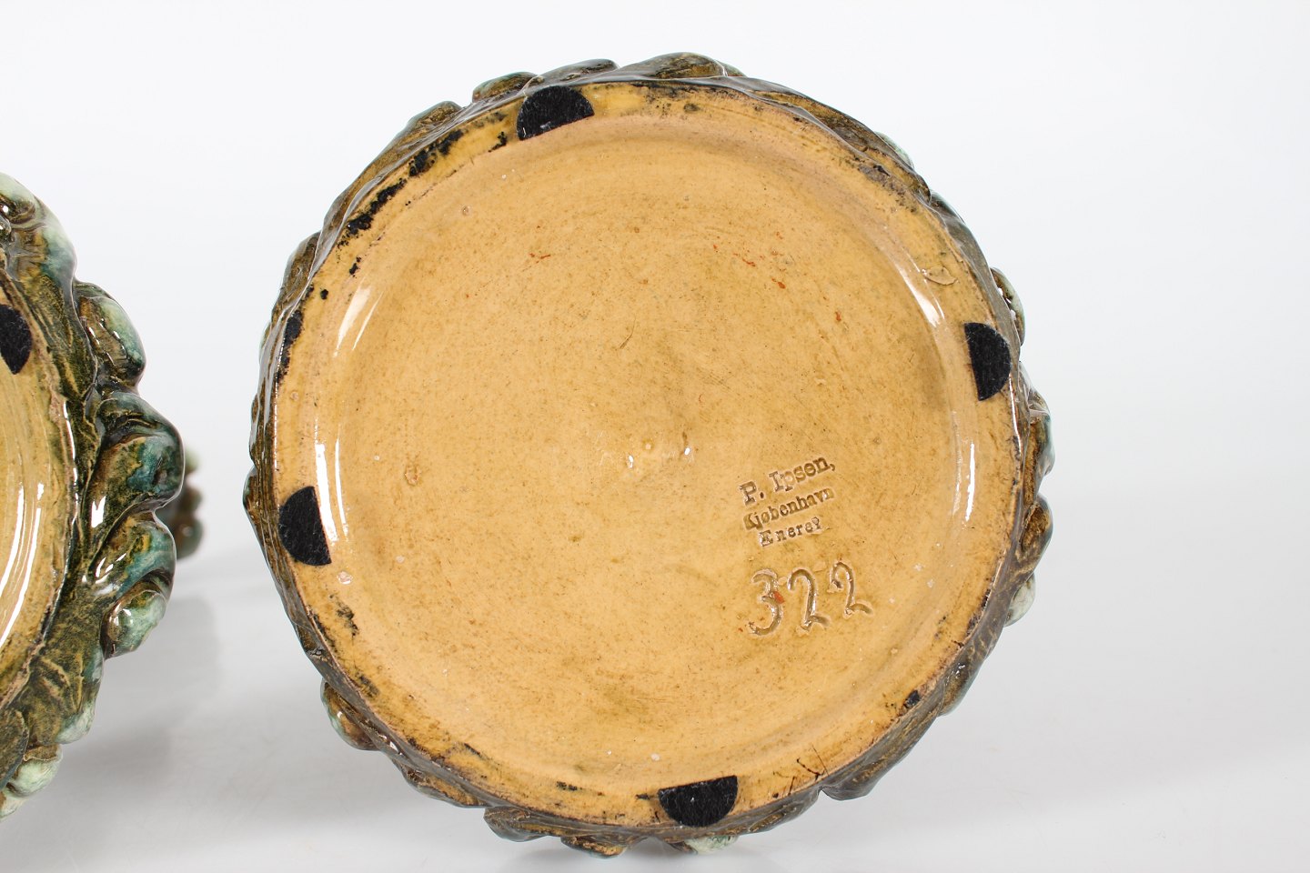 Decorated with glazed in shades of dark green and
