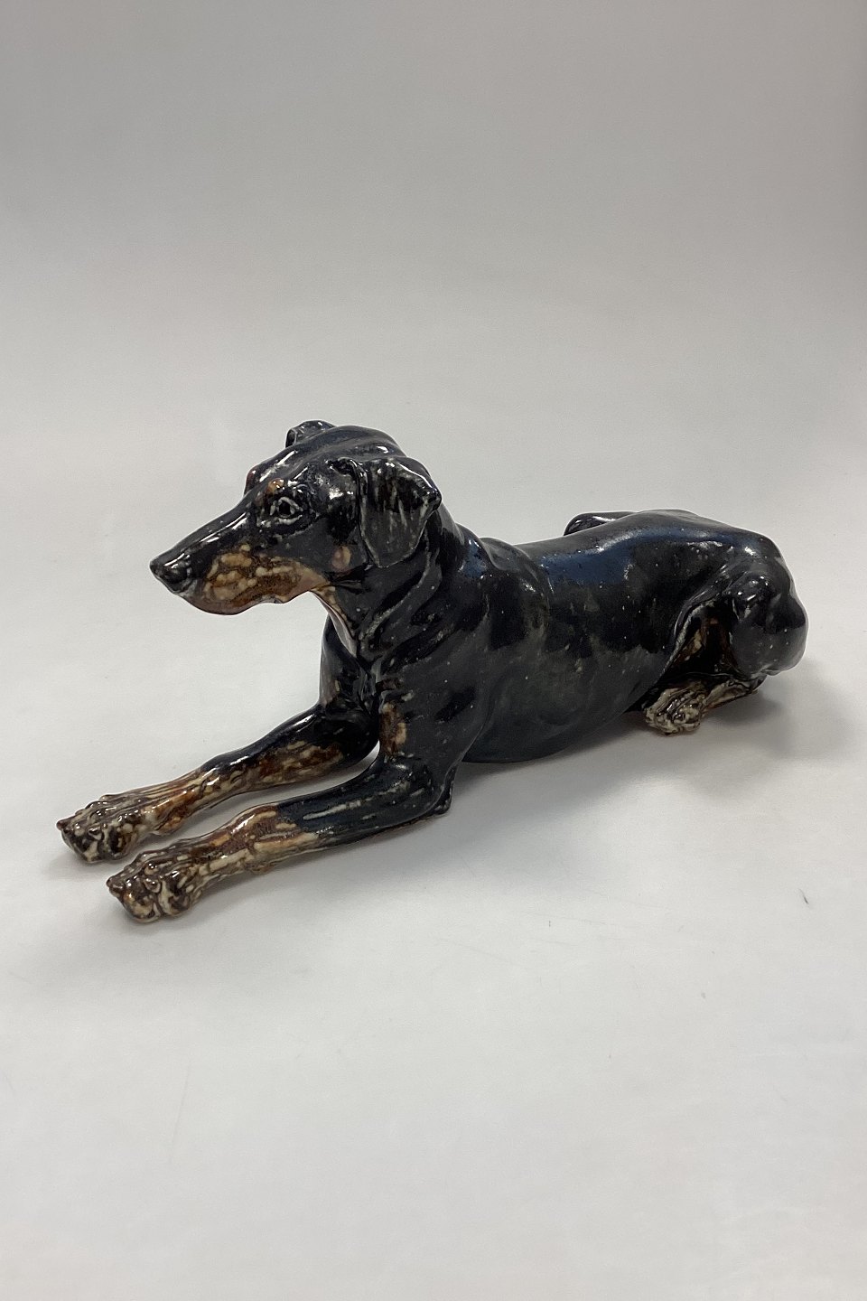 Royal Copenhagen Figurine of Dog - Dobermann No. 22691. Designed and signed by Jeanne Grut. Glazed stoneware. 1st Quality.Measures 37.5 cm x 15.5 cm / 14.76 in. x 6.10 in.