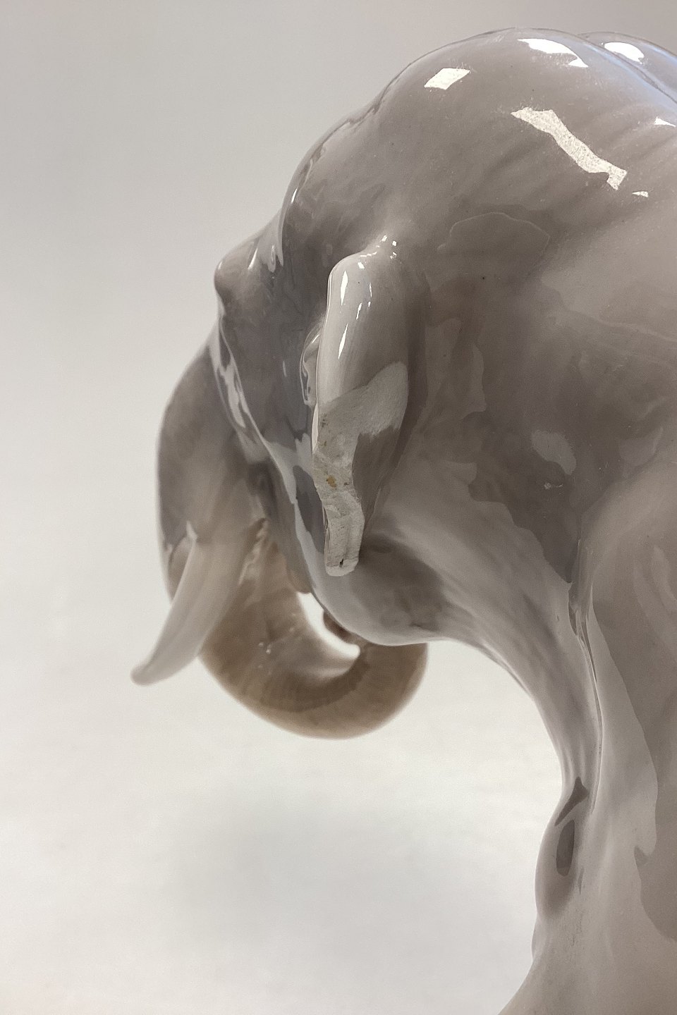 Royal Copenhagen Figurine Elephant No. 447. Designed by Theodor Madsen in 1903. Rare figurine.1st Quality. Not numbered. Small chips on feet, burn crack under right front leg, and broken ear, see photos.
