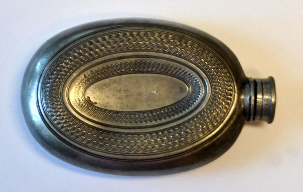 Tin lommelærke, 19. årh. Med dekorationer. Ustemplet. 11,5 x 7,5 cm.