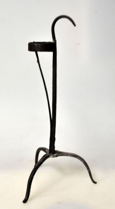 Baroque clamp candlestick, 18th century. Denmark. Made of iron. On three legs. H.: 25.5 cm.Really rare!