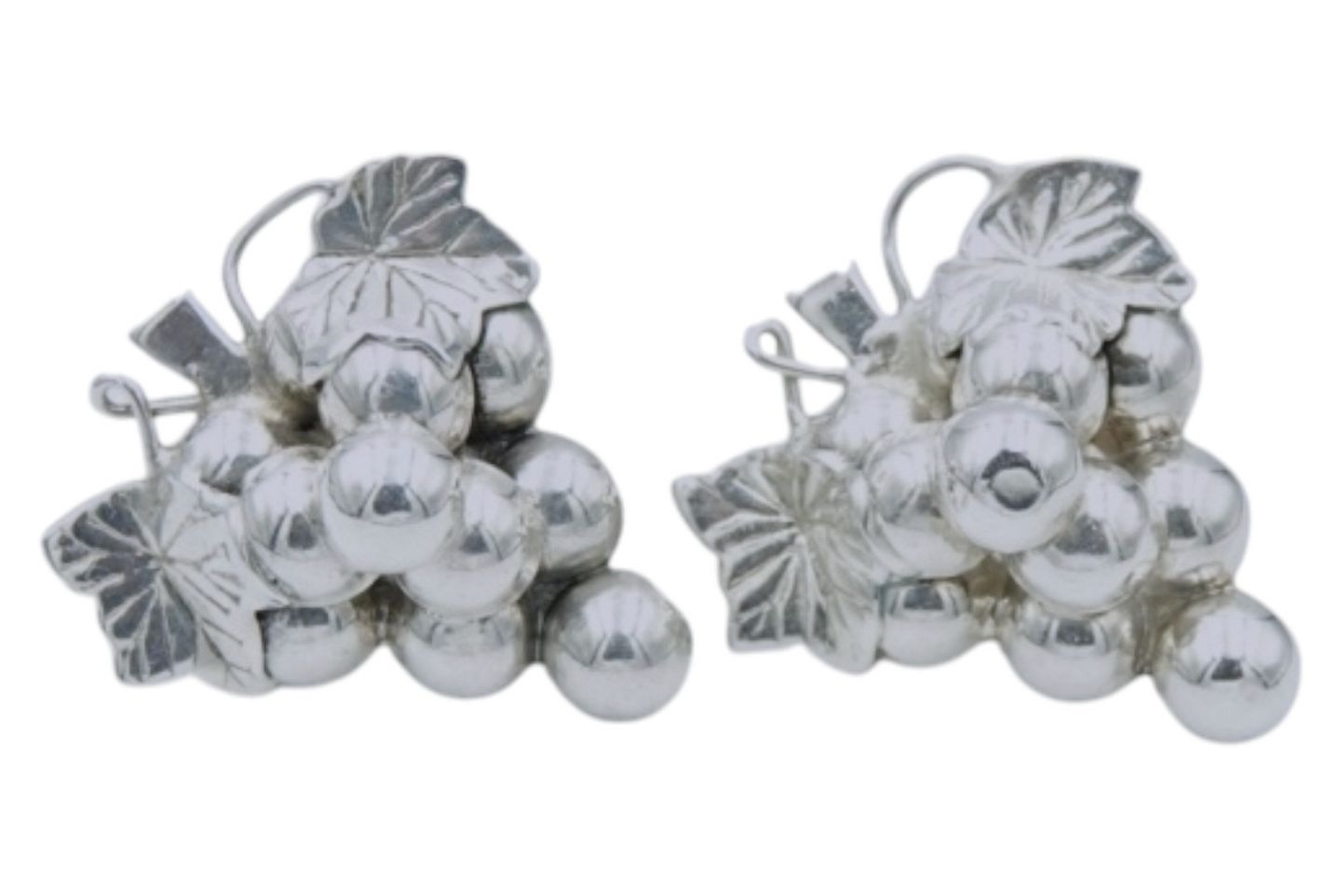 Herman Siersbøl sterlingsølv, vindrue ørestikker.Stemplet "HS 925S". Herman Siersbøl var sølvsmed i Kastrup fra 1948 til ca 2000. Denne er fra omkring 1980.