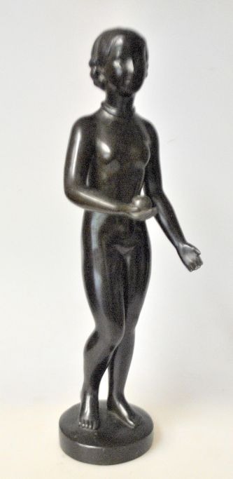 Andersen, Just (1884 - 1943) Denmark: Figurine, Ydun. No. D 2307. Patinated disco metal. Signed. H: 29 cmFirst produced 1942.