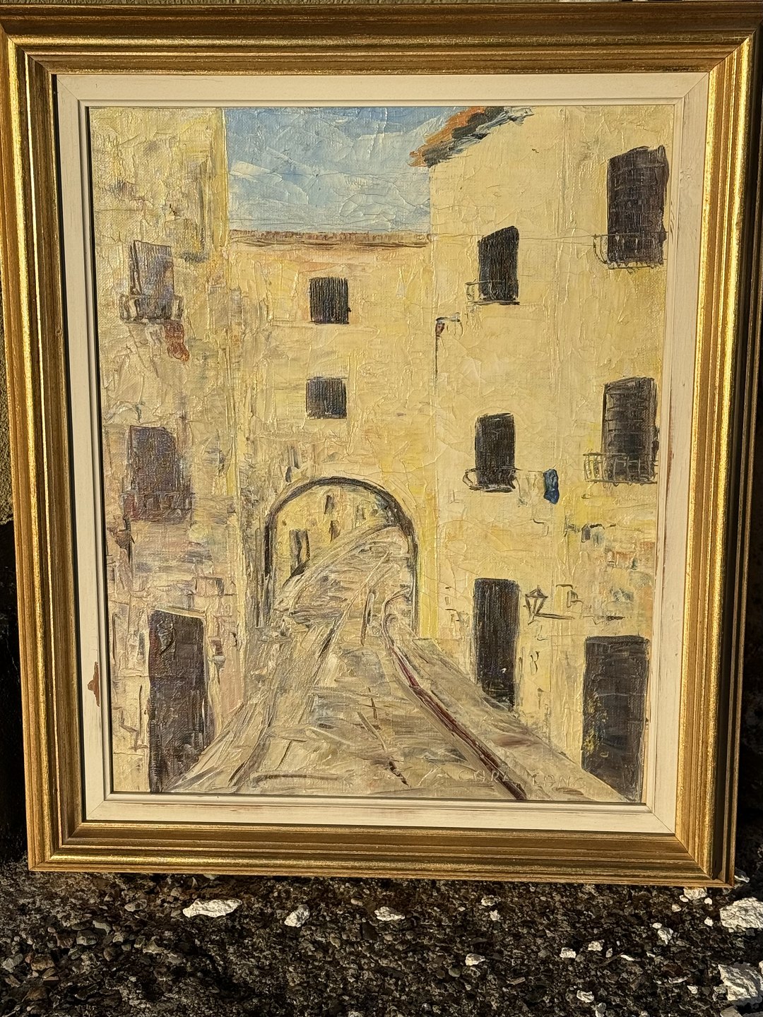 Carl Lang, Southern town motif, Oil painting on canvas, Dimensions with frame 51x43cmStock: 1