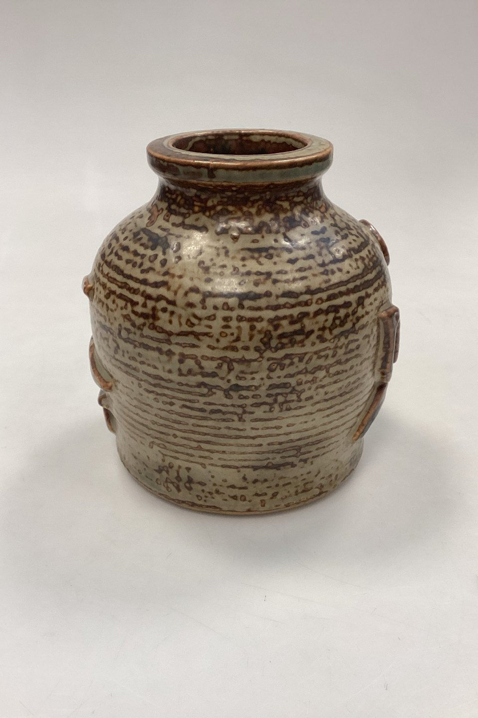 Royal Copenhagen Jorgen Mogensen Stoneware Vase No. 21484.With bird motifs. Appear with burn crack on edge (see picture)
