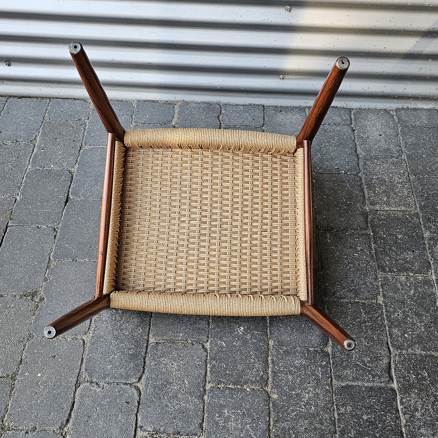 Sæt med seks styk spisebordsstole model 75 i palisander med ny flettede sæder. Et sjældent sæt med meget flot palisander træ.