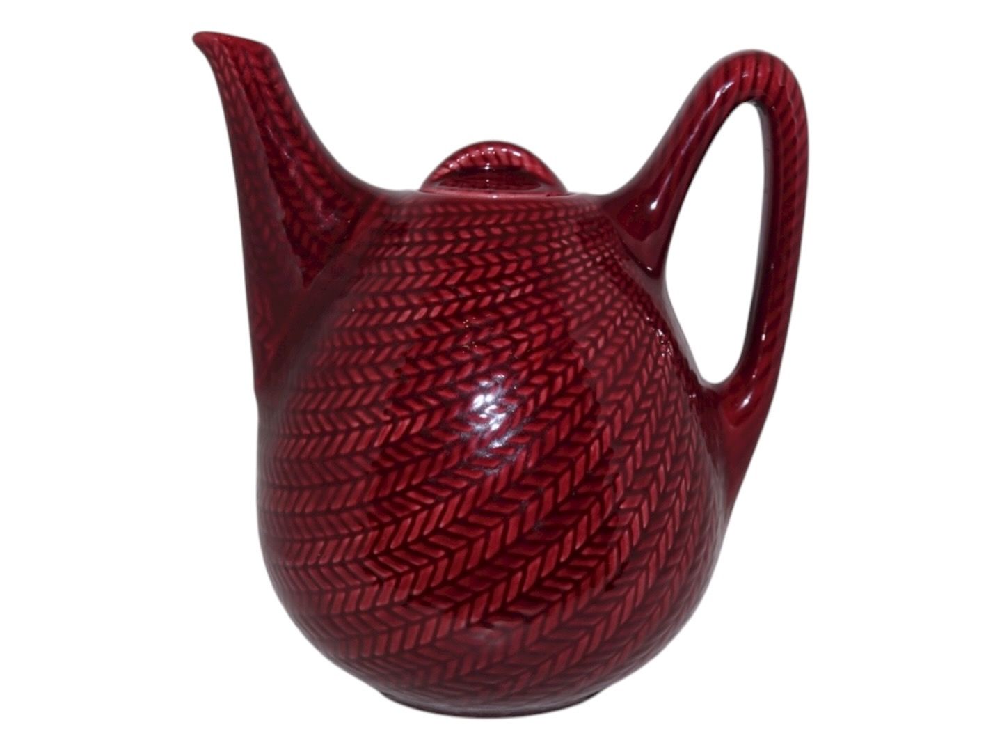 Rörstrand Blue Fire (Blå Eld), teapot in the rare red color.Designed by Hertha Bengtsson and this pattern was produced from 1950 until 1971.