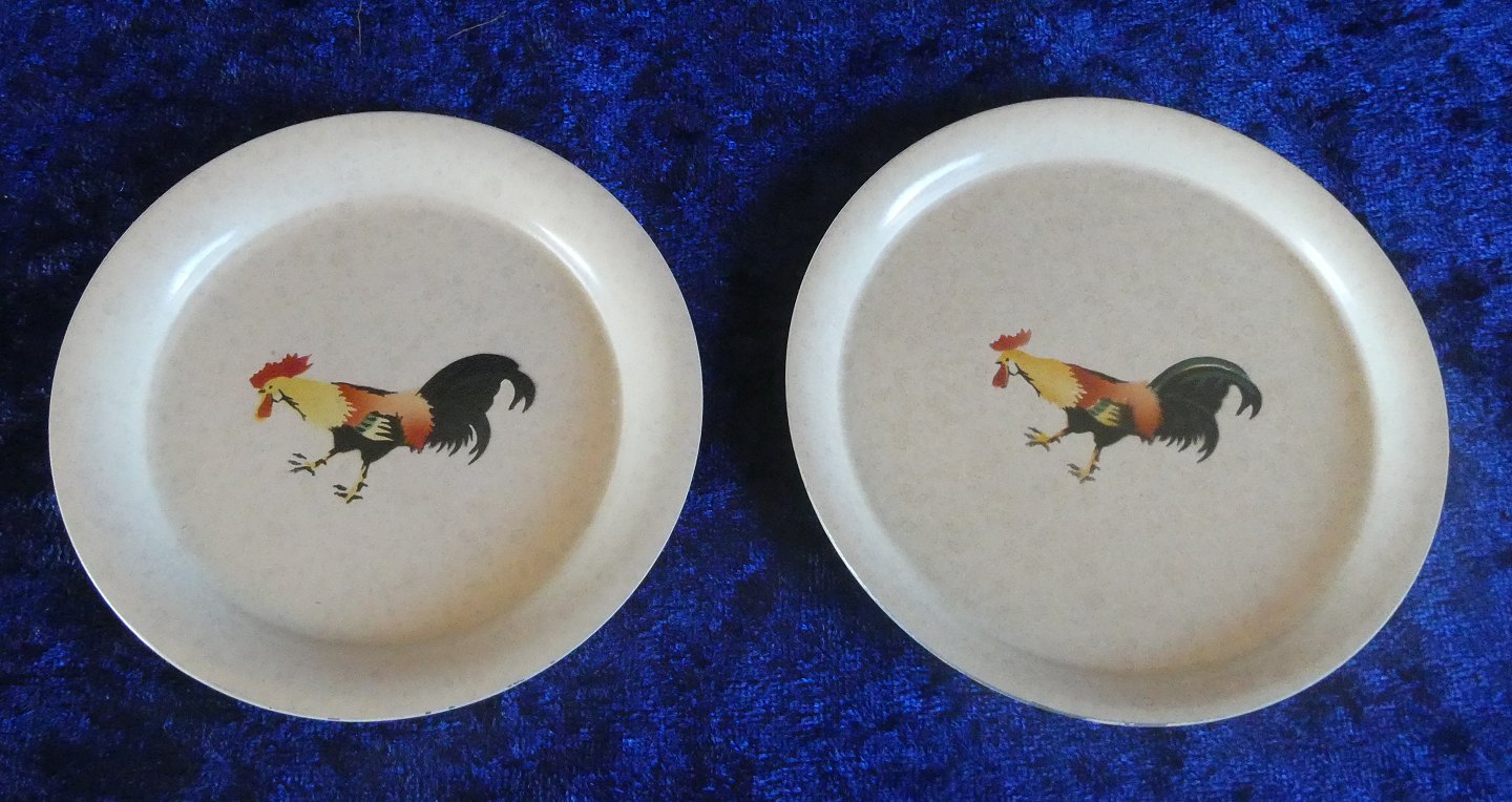 Liqueur-bowls with a white cock and tray with a cock.The set is in a good condition.