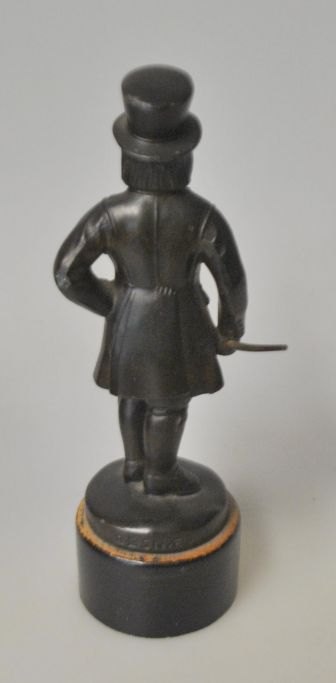 Andersen, Just (1884 - 1943) Denmark: Danish national costumes. Man from Røsnæs. H.: 13.5 cm. Stamped.Disco metal. Mounted on a base of black polished wood.