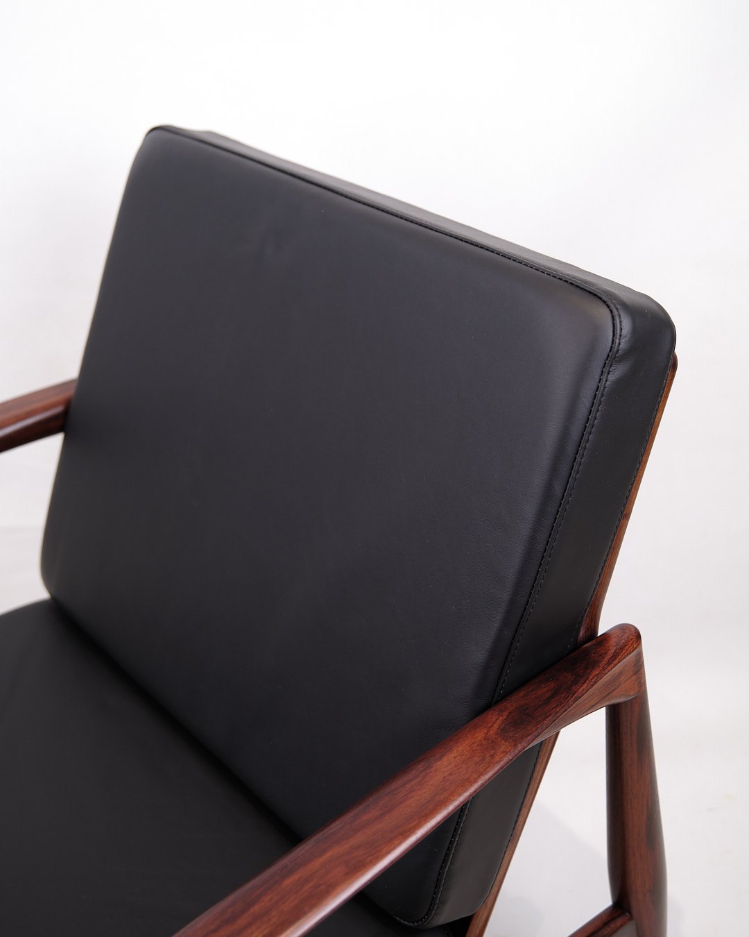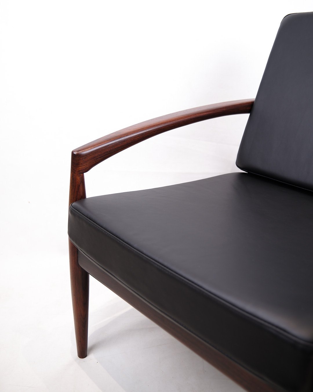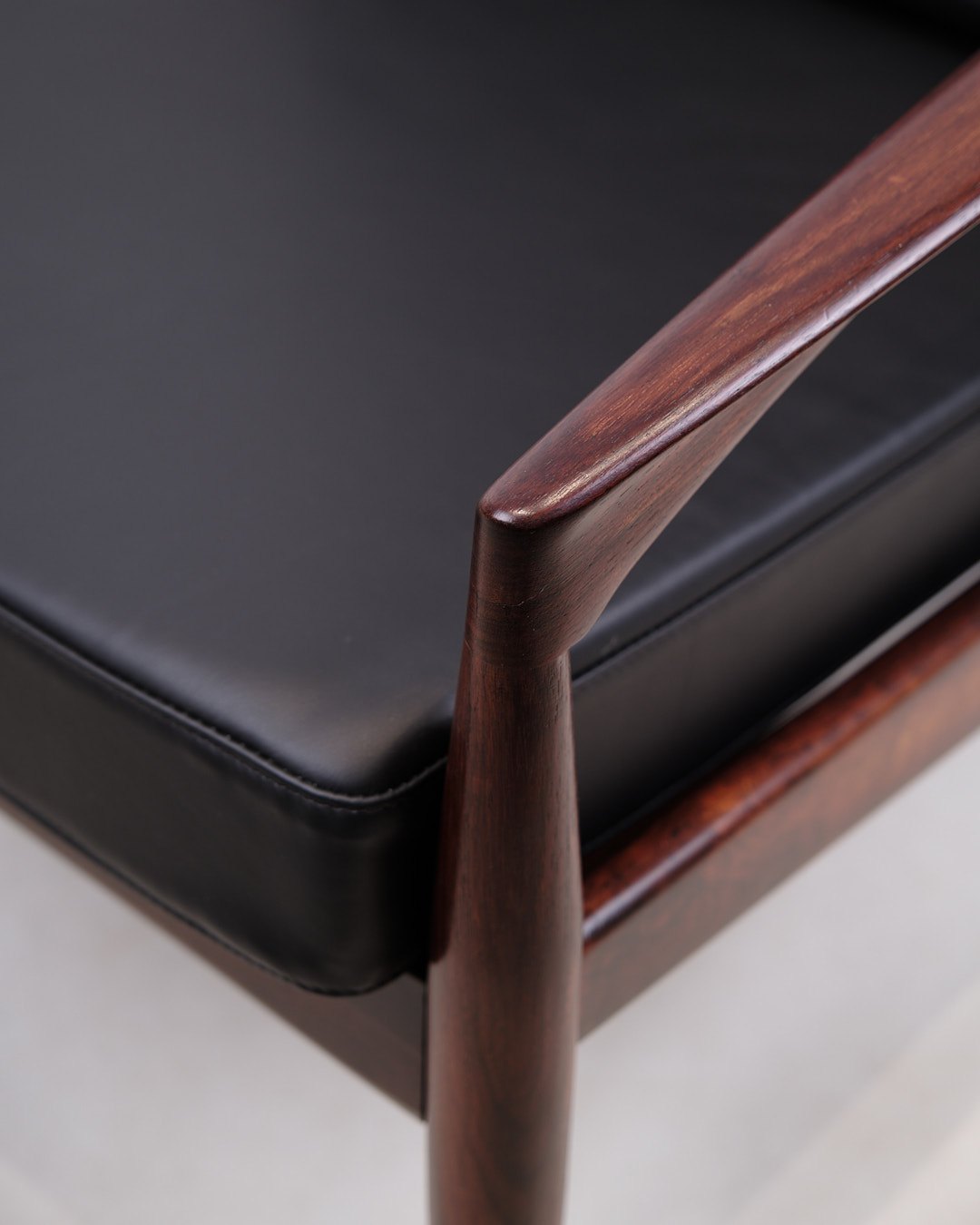 Kai Kristiansen “Paper Knife Chair”, model 121. Rosewood and black leather. Produced by Magnus Olesen, 1950s.— Designer: Kai Kristiansen