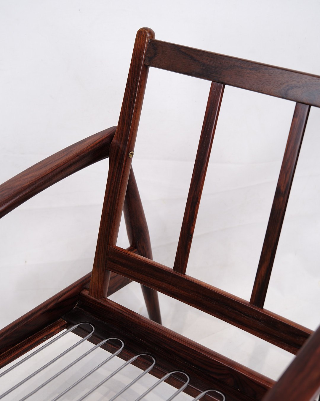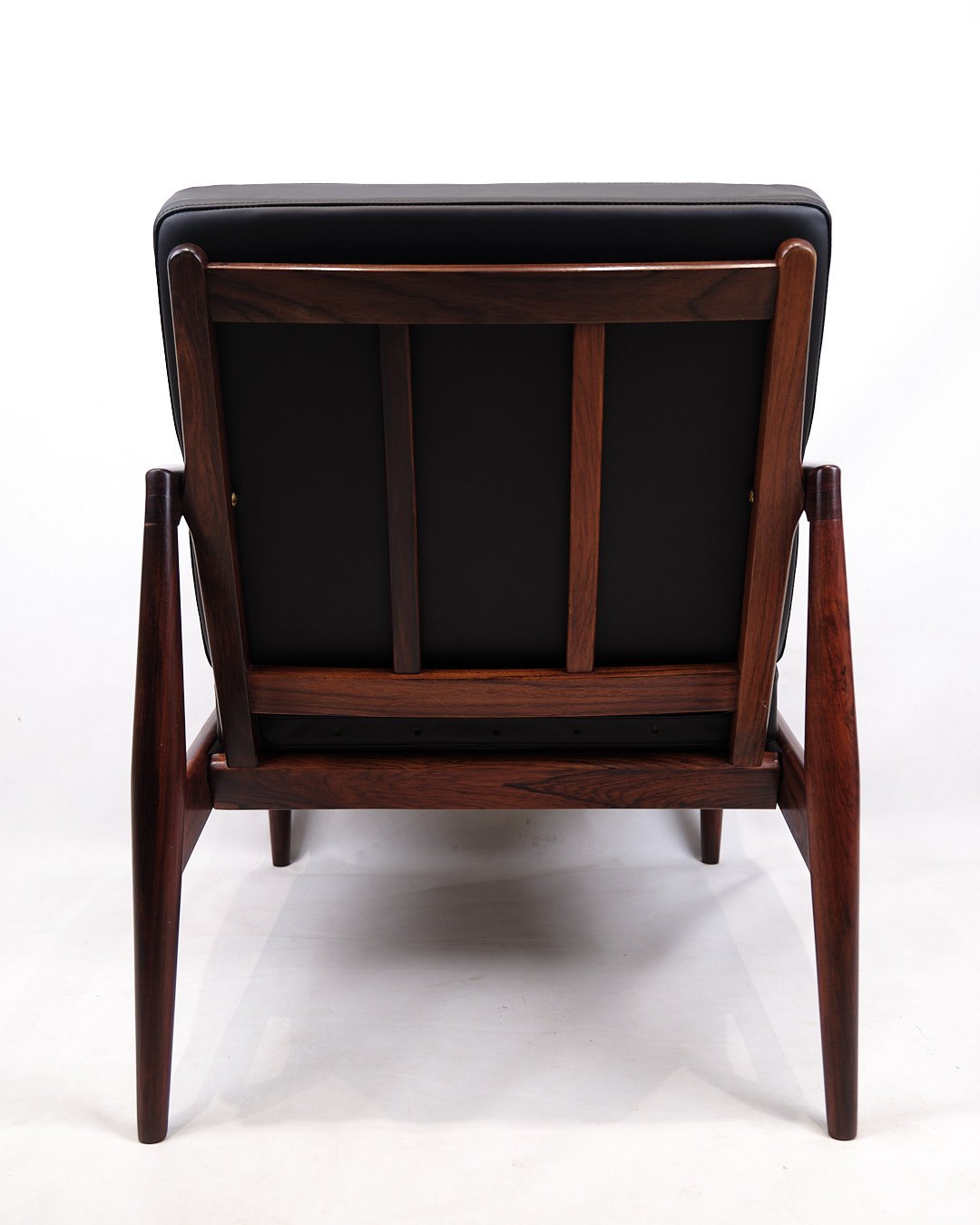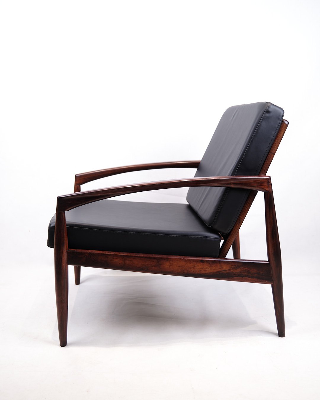 Kai Kristiansen “Paper Knife Chair”, model 121. Rosewood and black leather. Produced by Magnus Olesen, 1950s.— Designer: Kai Kristiansen