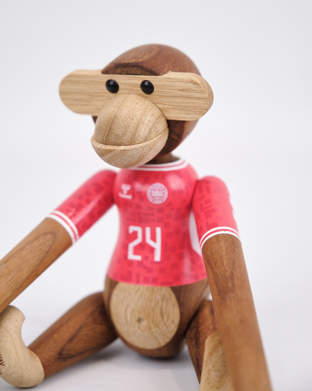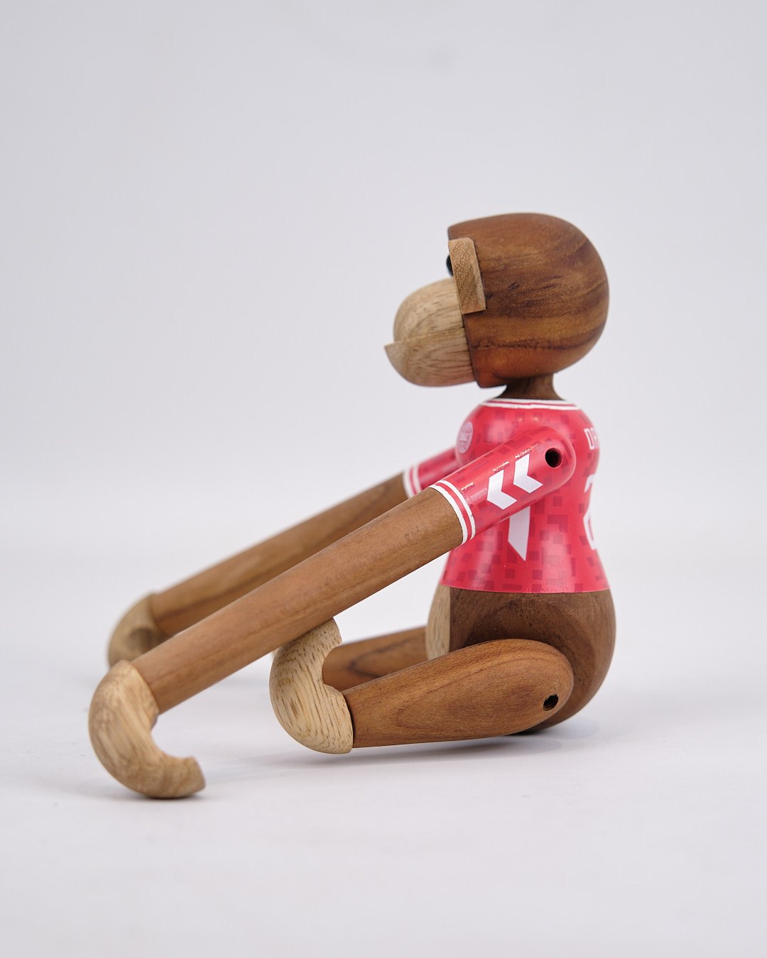 Kay Bojesen monkey, small model in teak and limba. DBU Herrelandsholdet limited edition. Classic Danish design icon.— Origin: Denmark
