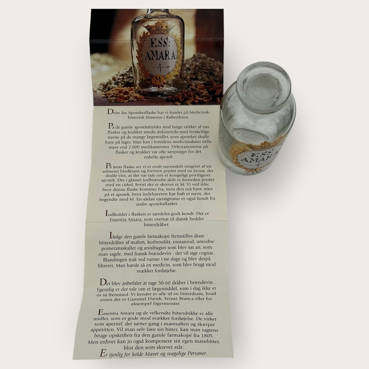 Holmegaard apothecary bottle from 1997, Ess Amara, Dimensions: 13x5cm, the bottles are mouth-blown copies of original old apothecary bottles, Signed Hg97.