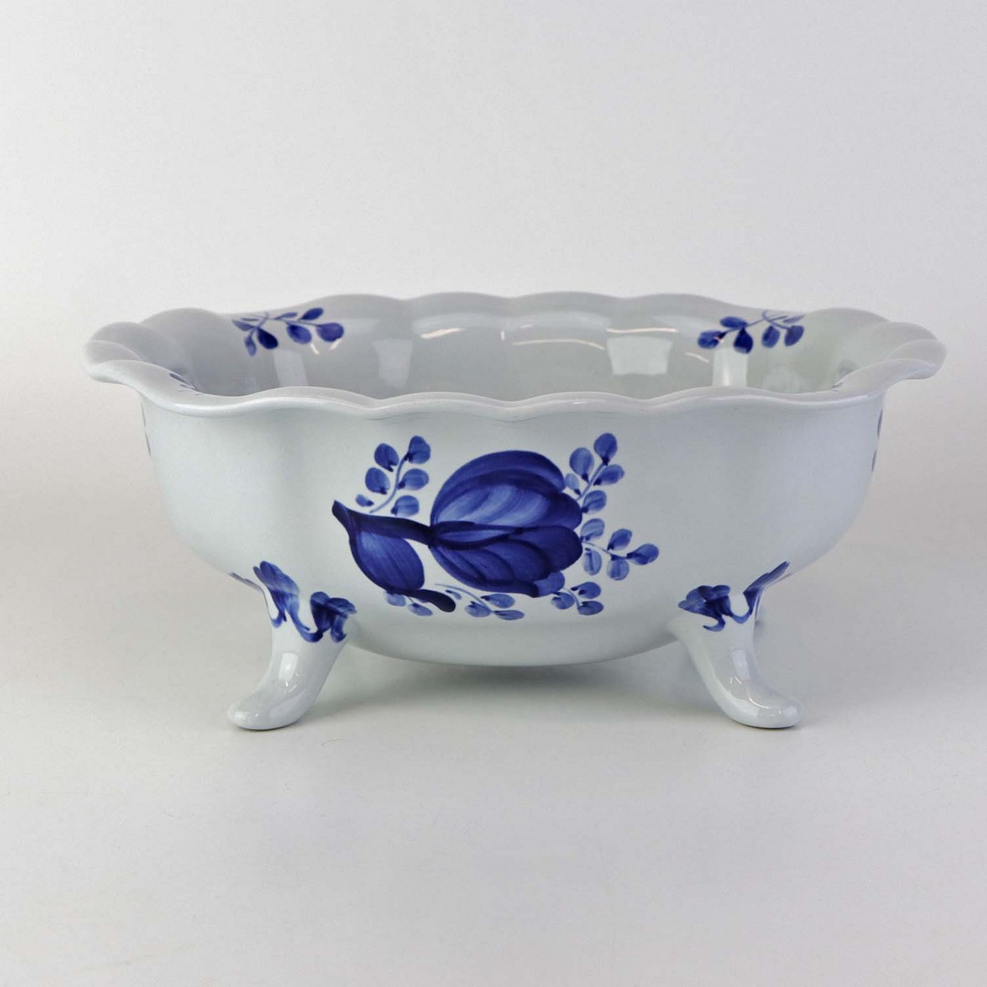 Glat Lyst fajance med blå dekoration af blomster og blå bort.