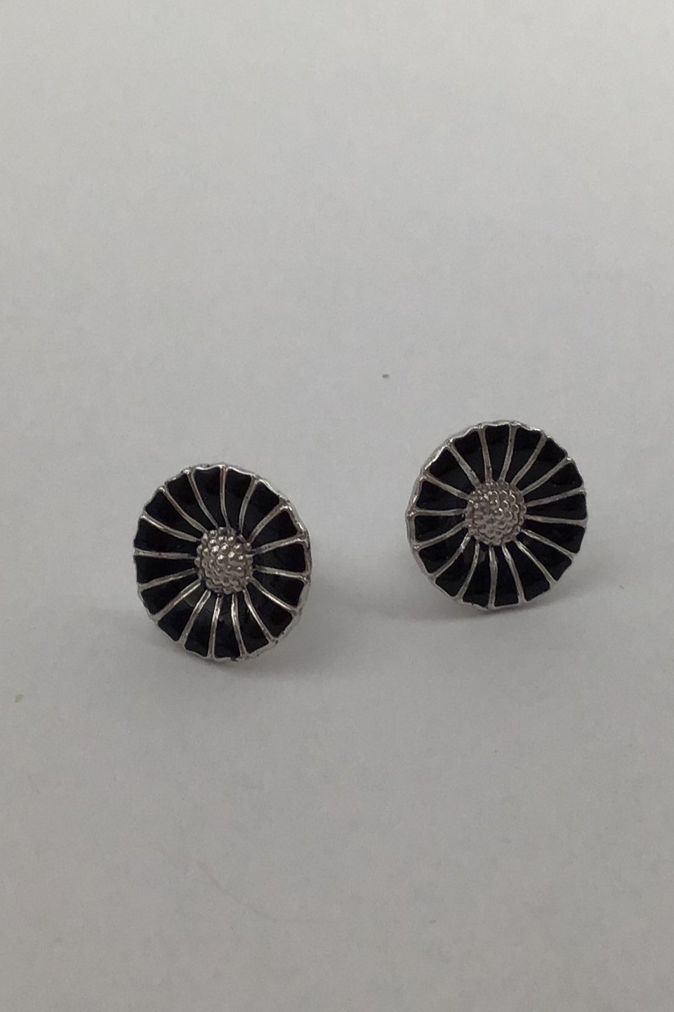 Georg Jensen Sterling Sølv Marguerit Ørestikker (Sort)Måler Diam 1.2 cm (0.47 inch) Samlet Vægt 2.45 gr. (0.08 oz)
