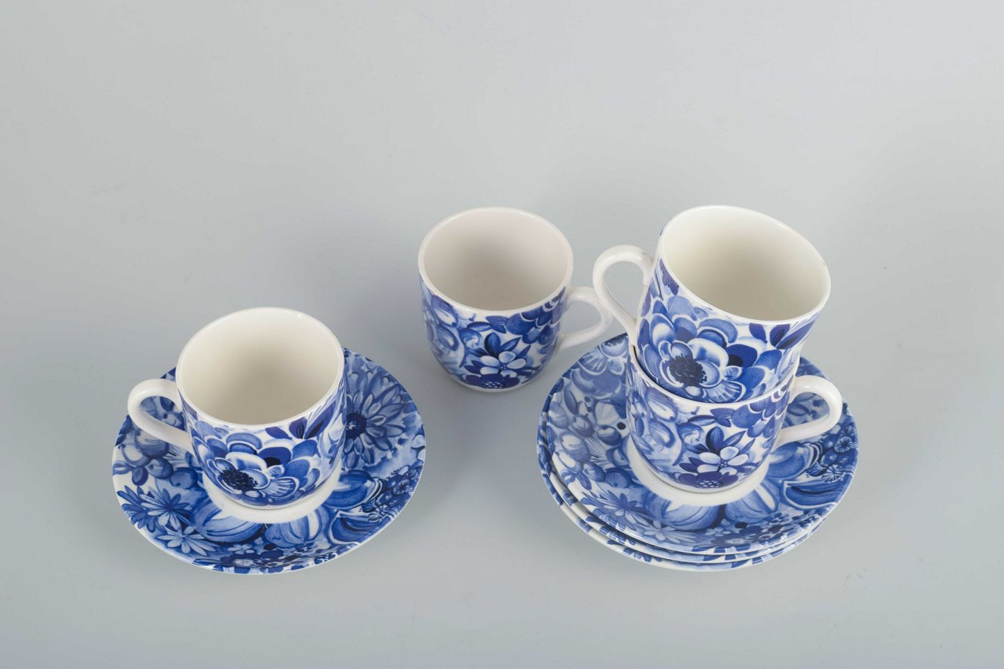Gefle, "Blå Blomster"4 coffee cups with saucers, mid-century.
