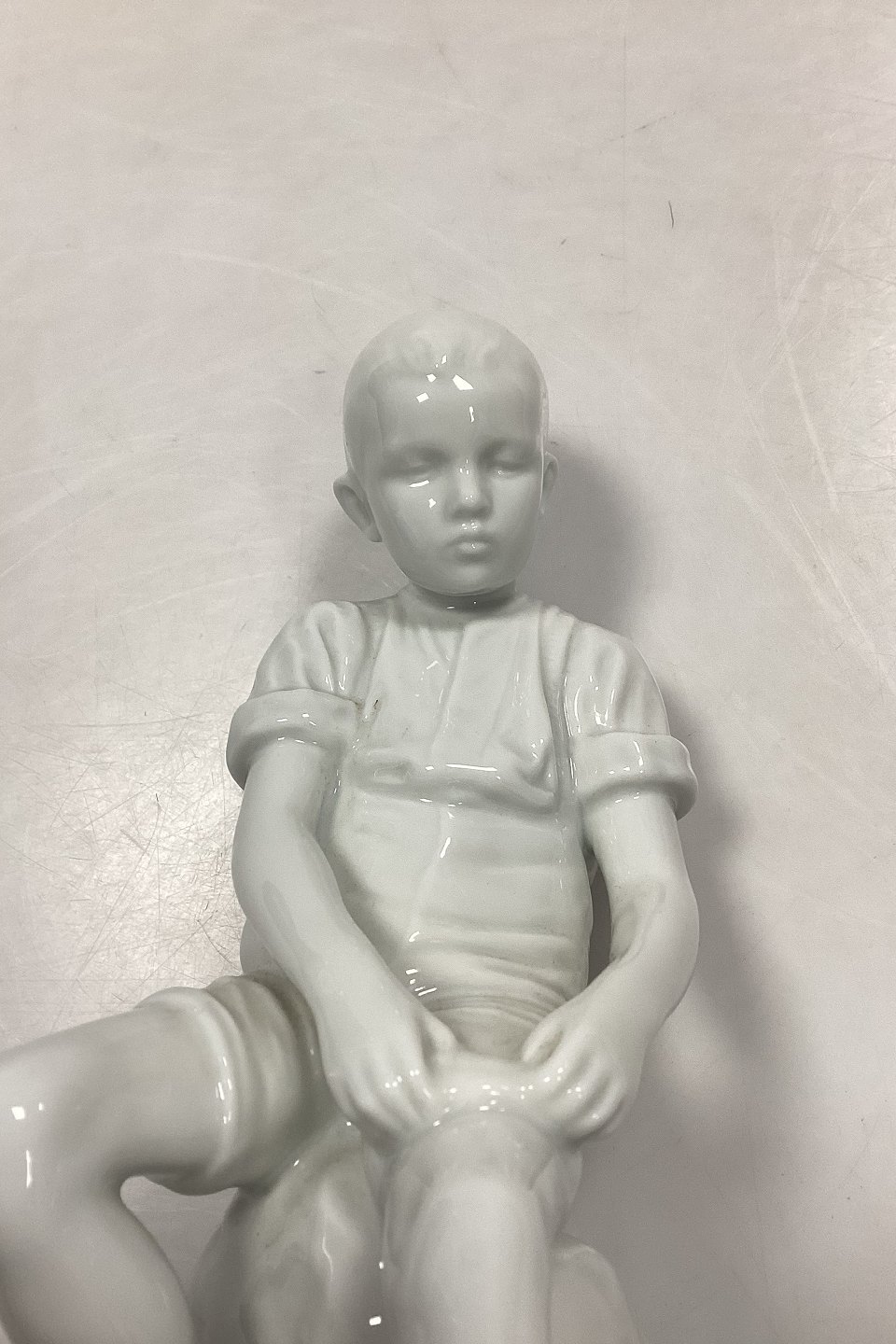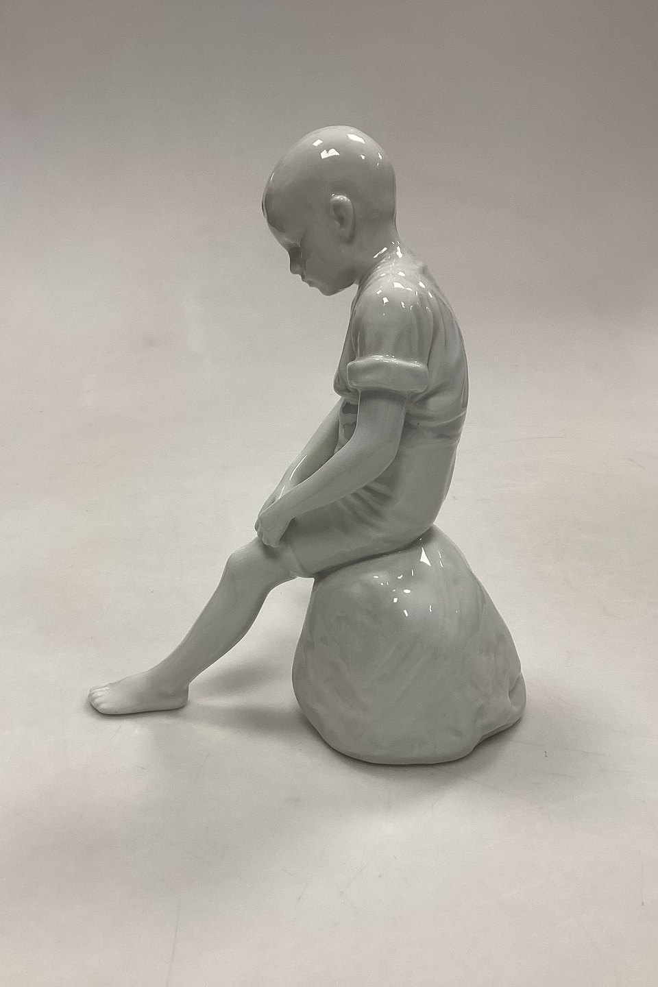 Royal Copenhagen Blanc de Chine Figurine - Boy on Stone No. 520. Designed by Ingeborg Plockross Irminger. Originally a Bing and Grondahl figurine, but relaunched in blanc de chine by R.C. in 2008.