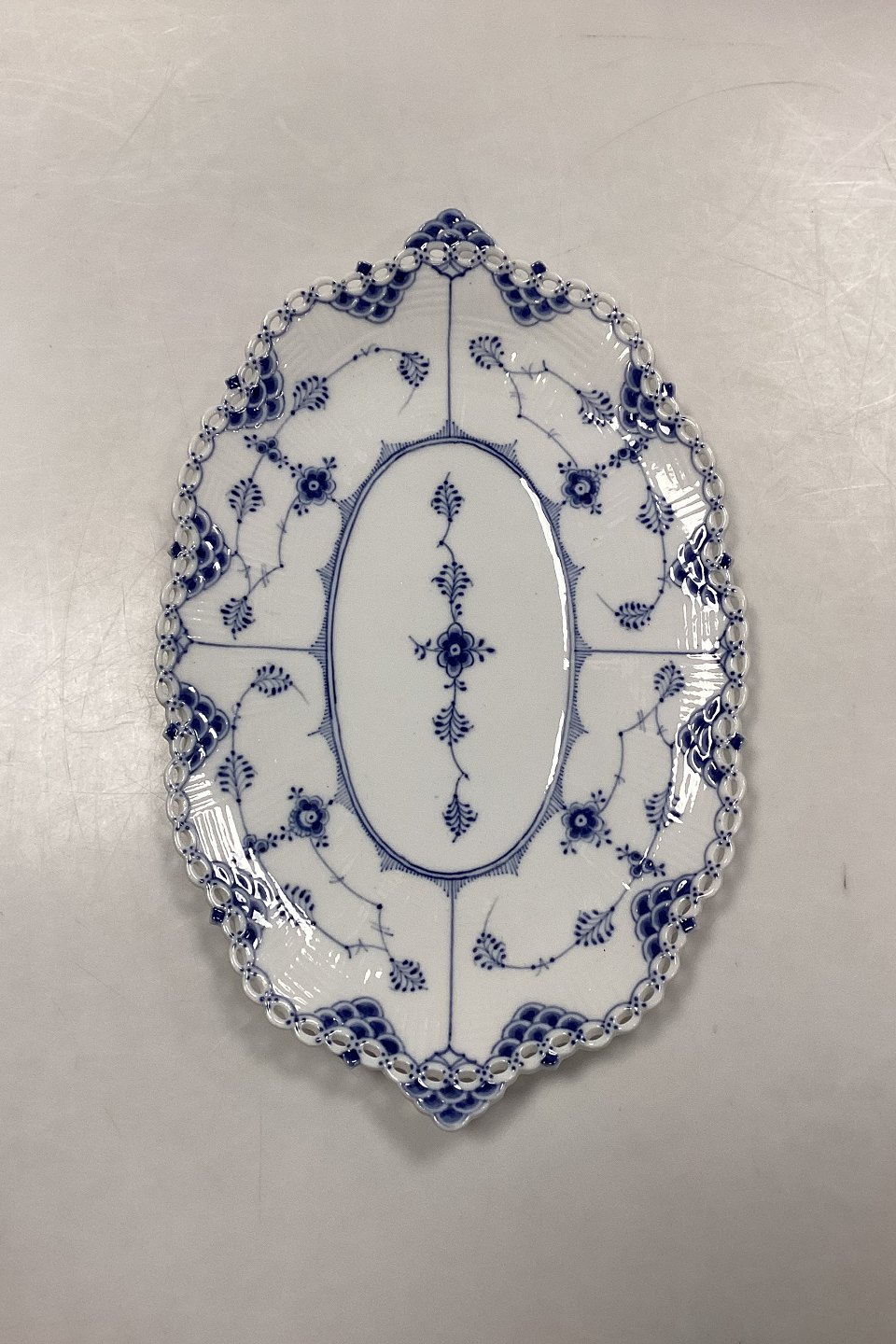 Royal Copenhagen Blue Fluted Full Lace Saucer for Fruit Basket No. 1060 / Privately painted.Measures 22 cm x 33 cm / 8.66 in. x 12.99 in. Dish for Fruit Basket No. 1059. 1st Quality with signature.