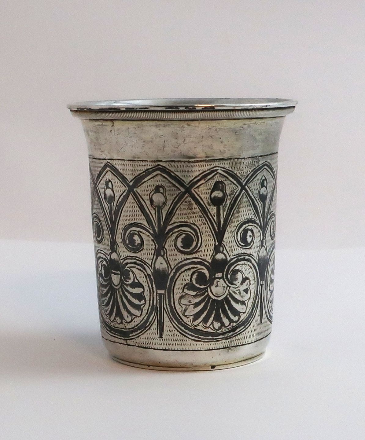 Russia. Small silver goblet with niello (84). Height 6 cm. Diameter 5.1 cm. Produced 1837