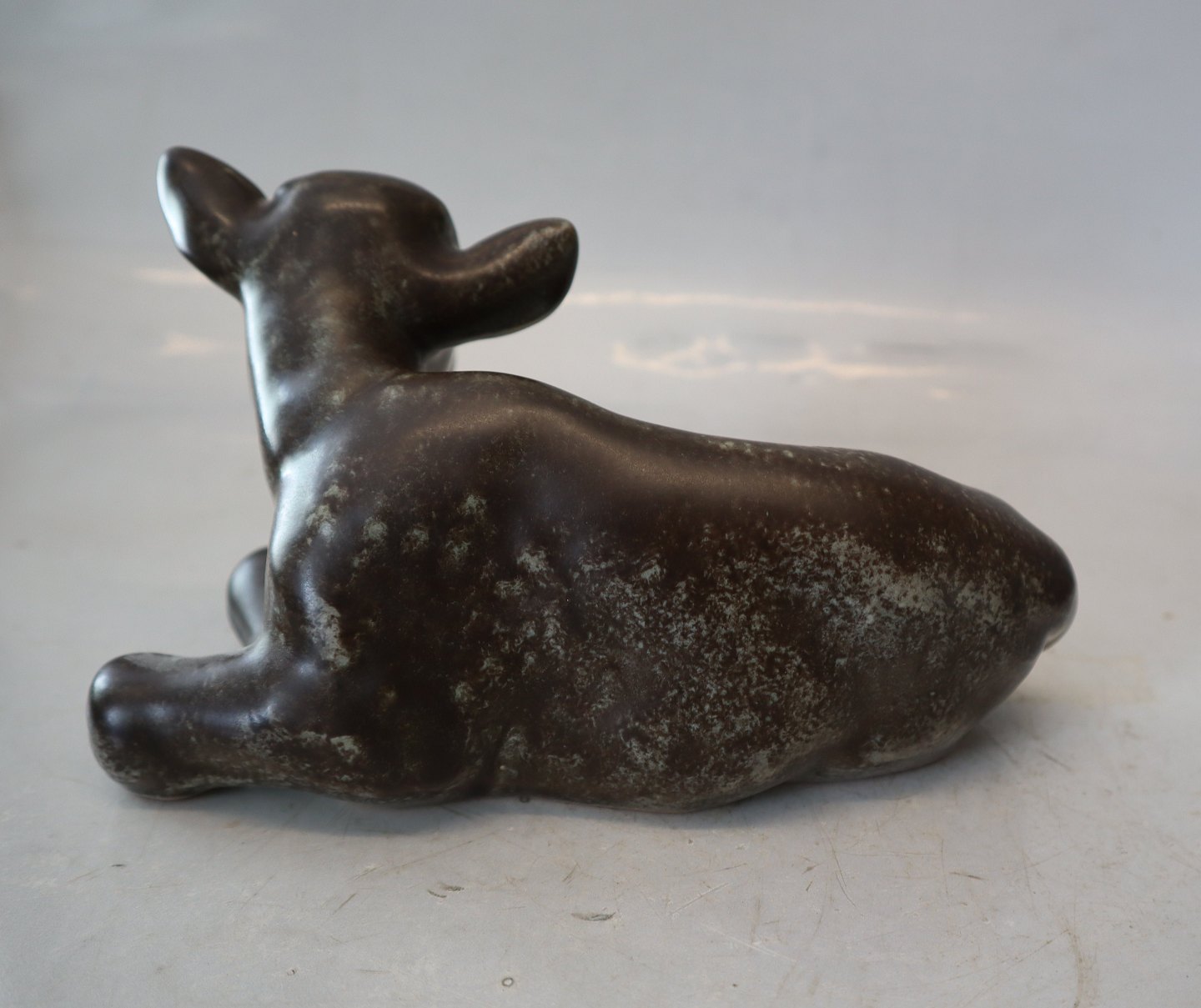 117 Green Glazed Calf 11.5 x 20 cm JohGus, Bornholm CeramicRoenne. Bornholm