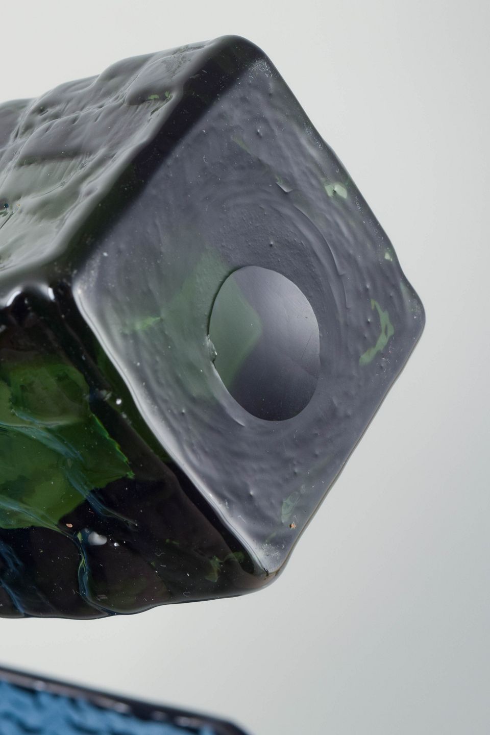 Dimensions: Green vase H. 17 cm, D. 6 cm. Blue vase H. 12 cm, D. 7 cm.
