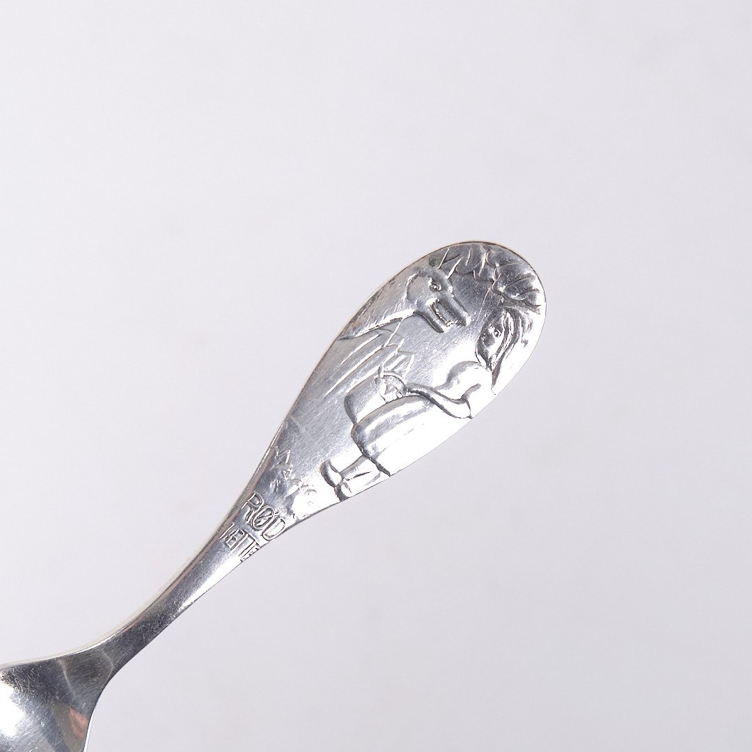 Children's fork in three-towered silver with motif of “Little Red Riding Hood”. Hallmarked. Classic Danish silver design.— Motif: “Little Red Riding Hood”