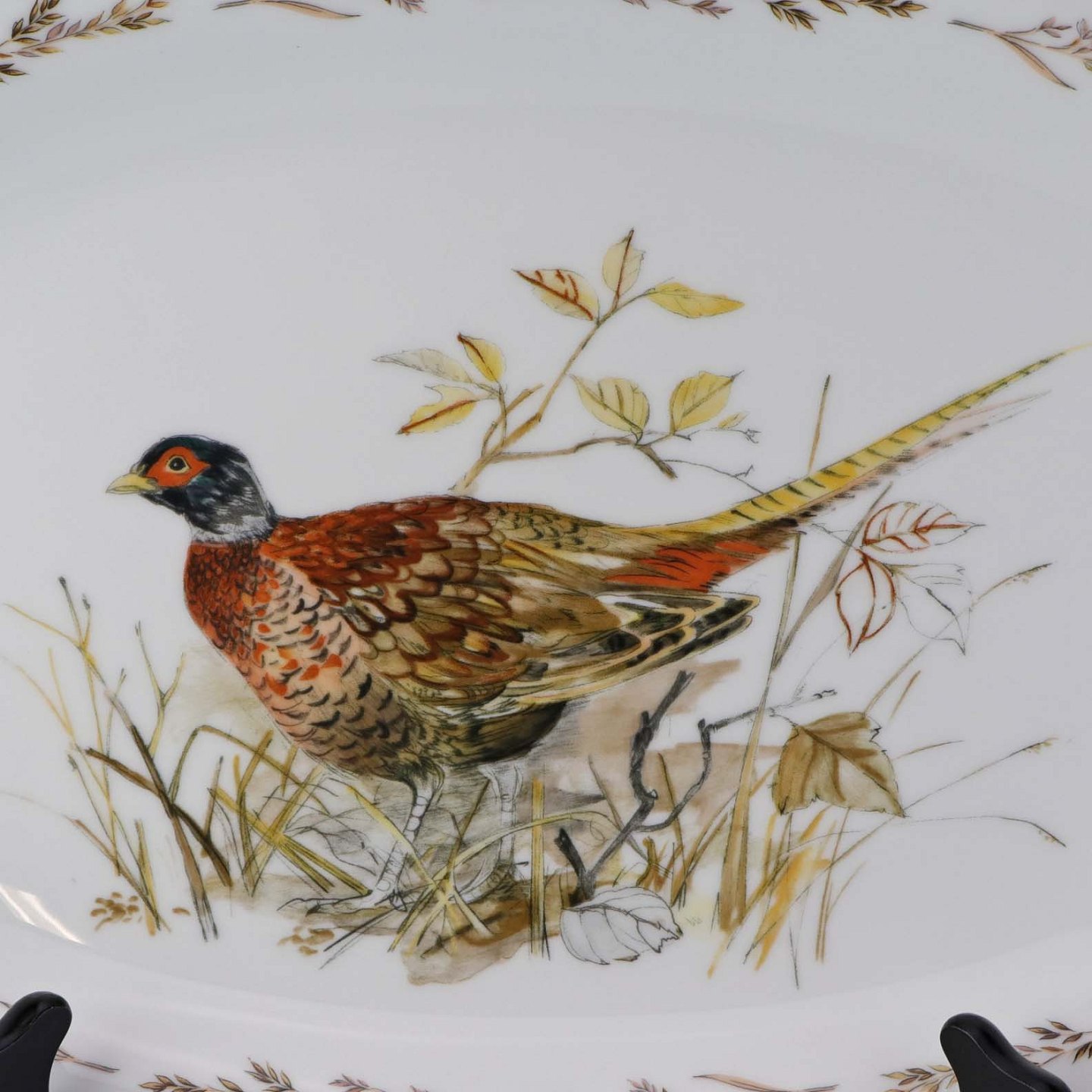 Ovalt serveringsfad i porcelæn med motiv af fasan fra stellet Jagtstel. Nr. 35