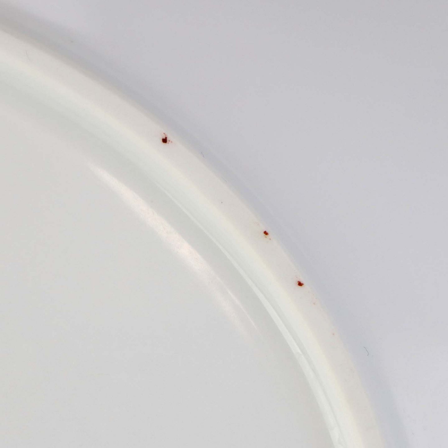 Fremstår med med mindre overfladiske ridser i fadets bund samt et par minimale brune pletter unden bunden.
