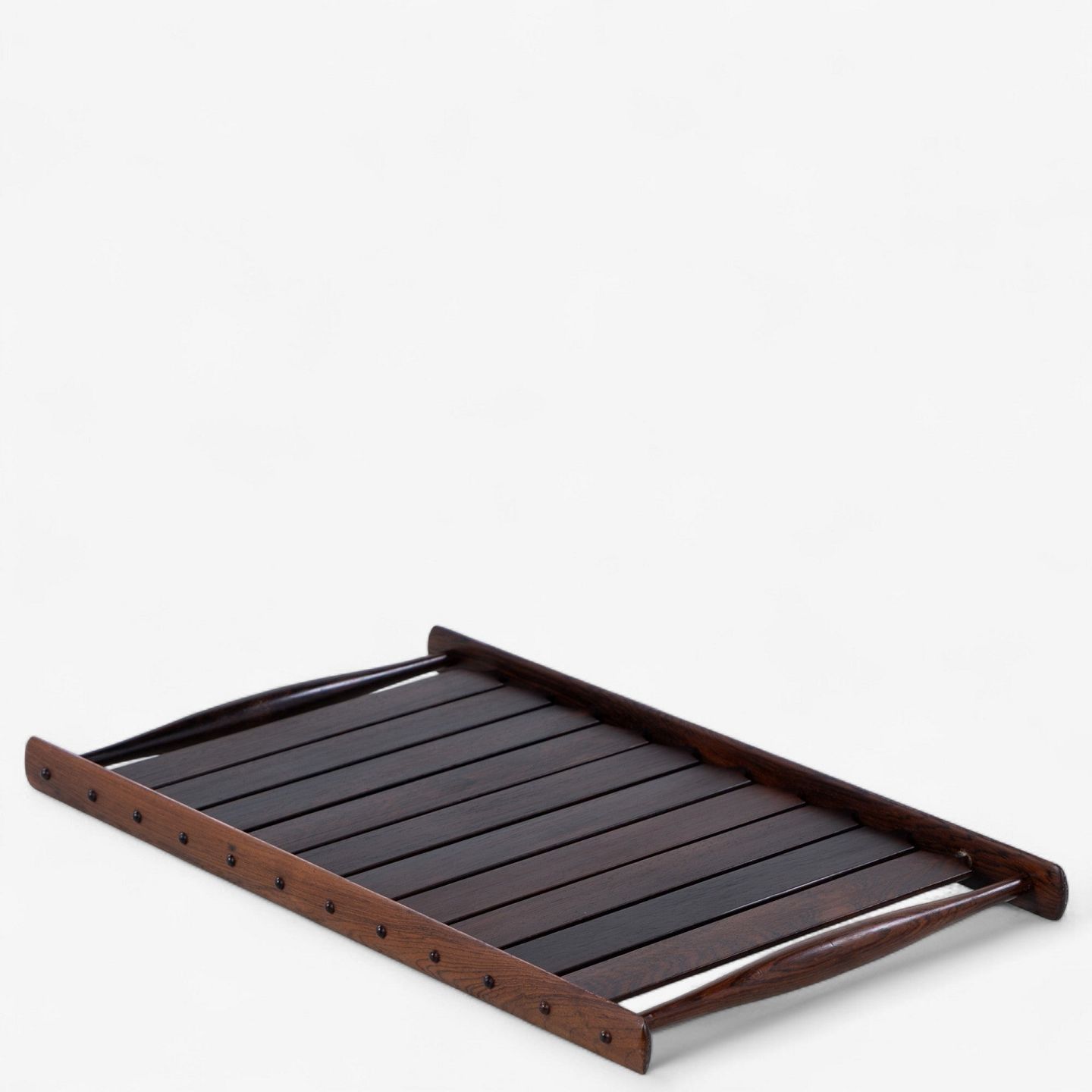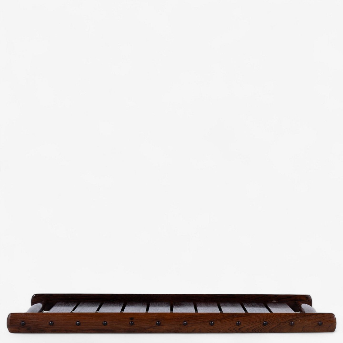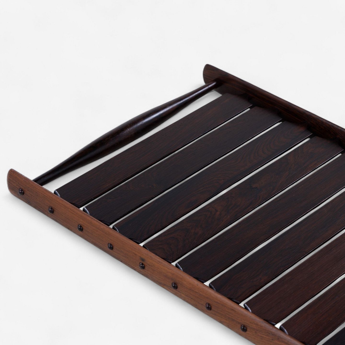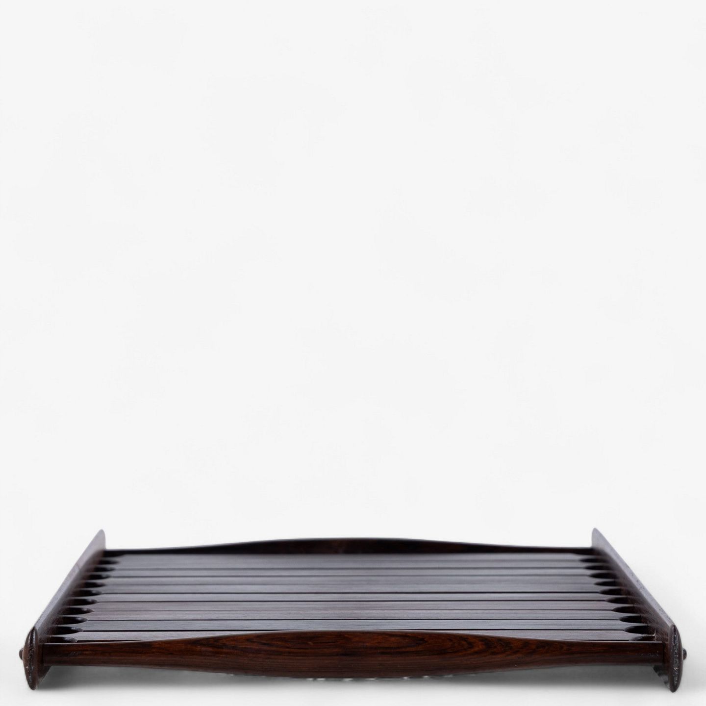 'Xylophone' serving tray in Rio rosewood with slats and handles.
