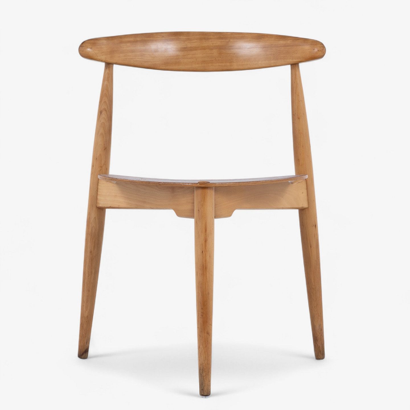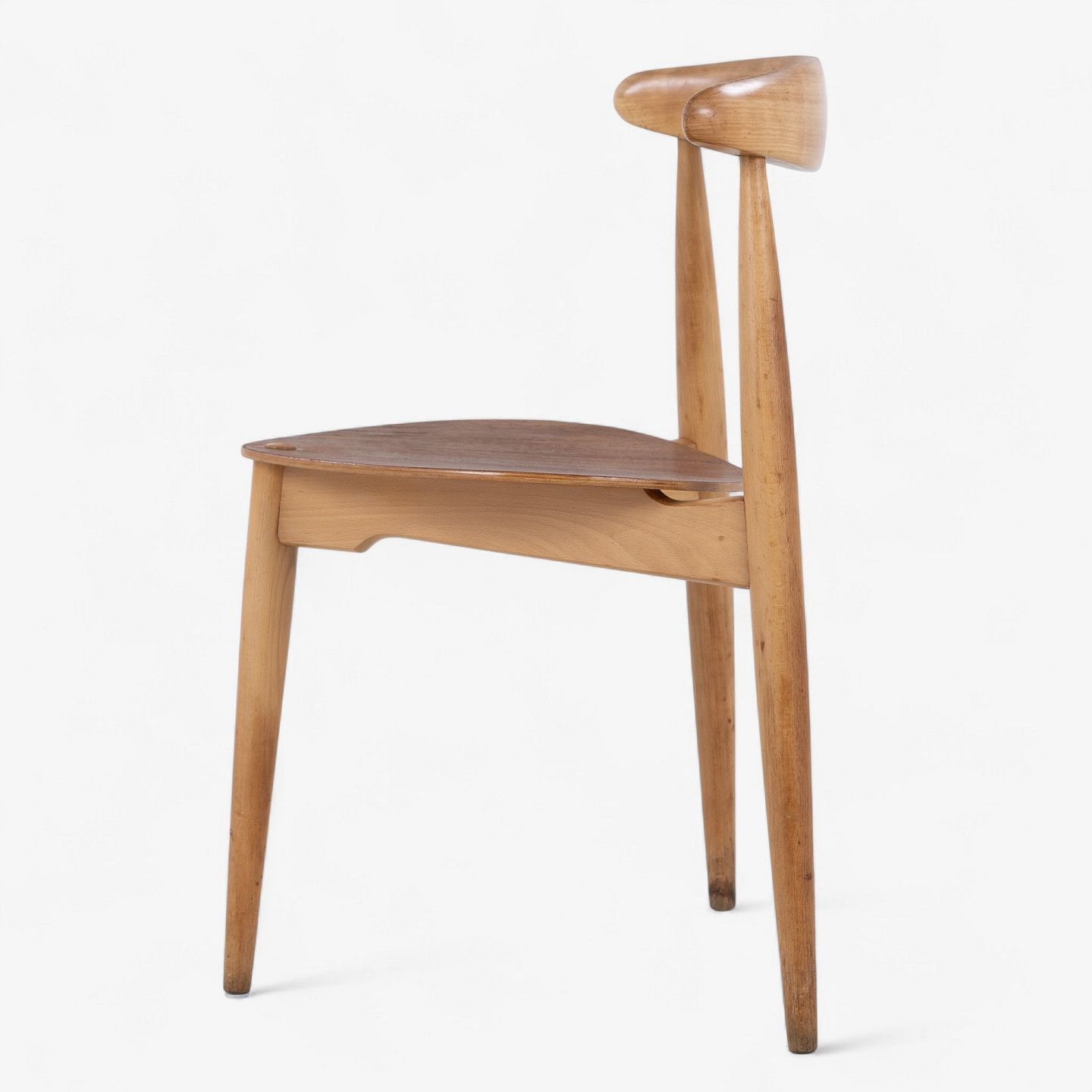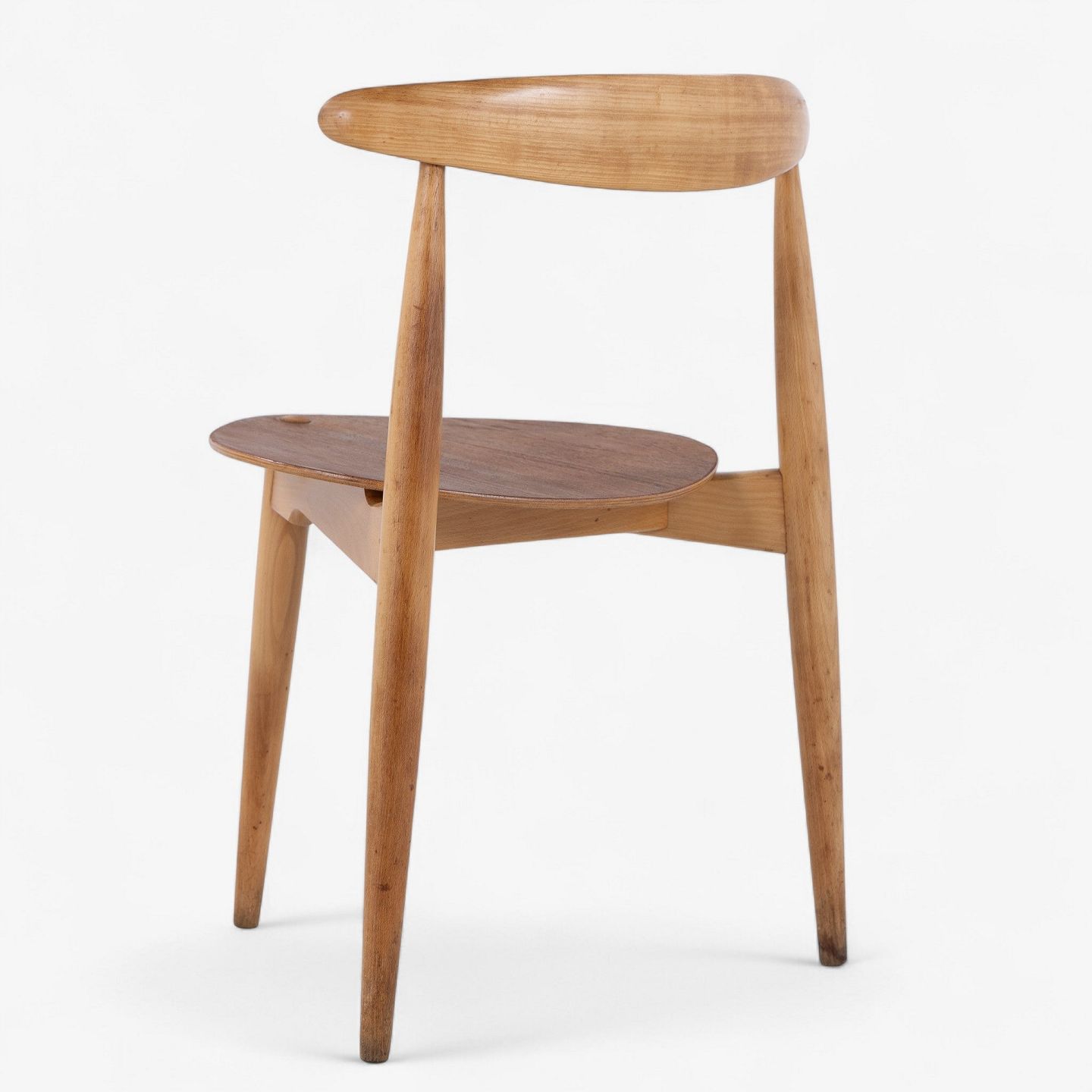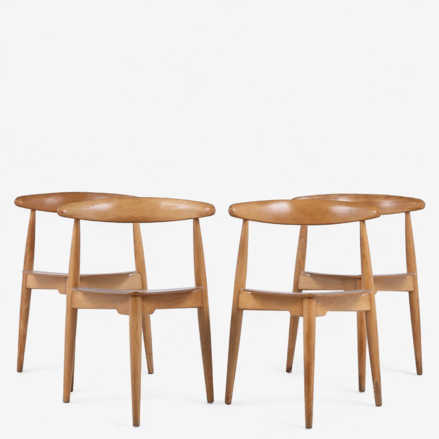 FH 4130 - Set of 4 'Heart Chairs' in solid patinated beech with teak seats. Designed 1952.