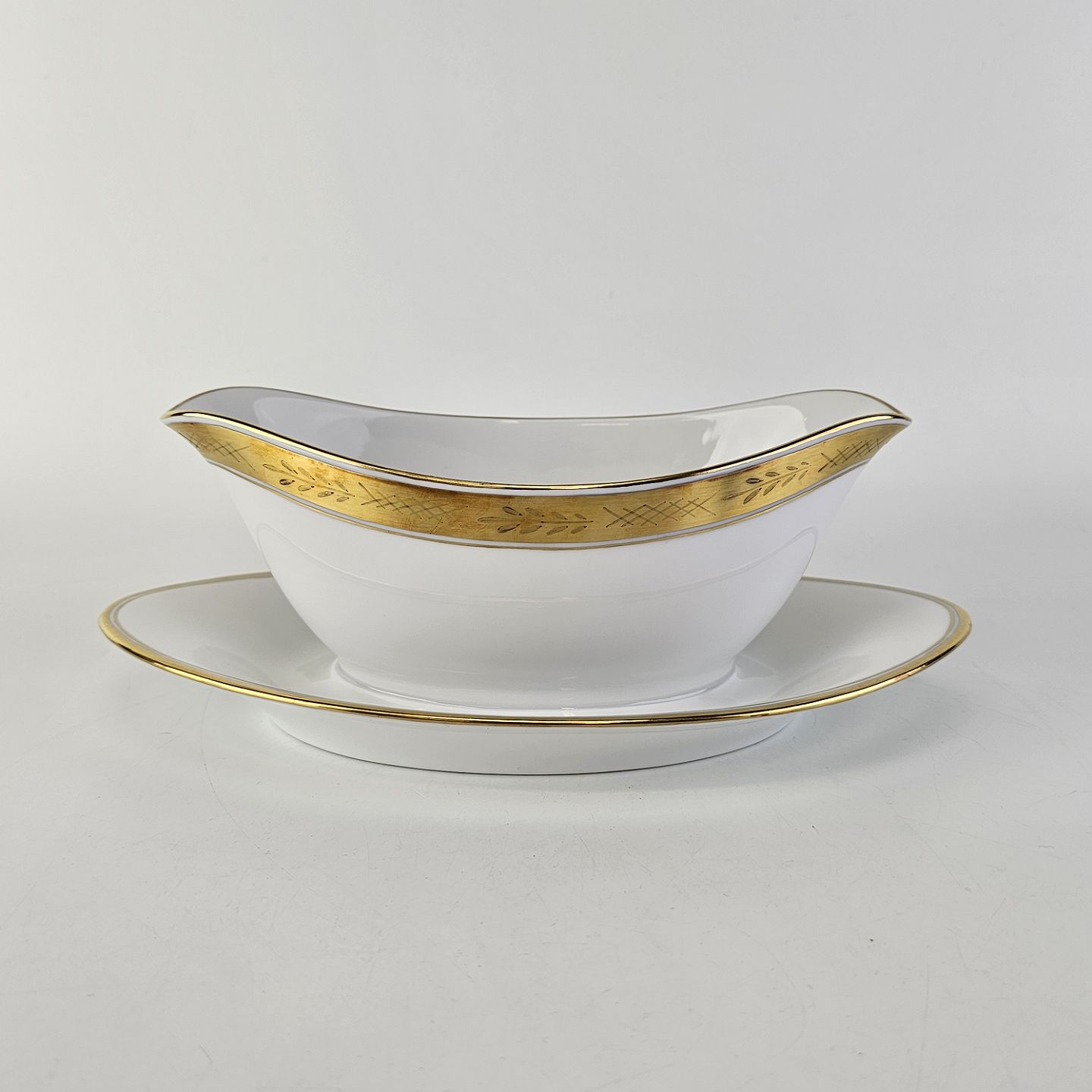 Stel nr. 607 er i hvidt porcelæn og har en guldkant med bladværk