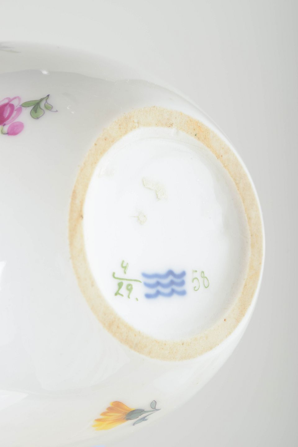 Royal Copenhagen was founded in 1775 under the patronage of Queen Juliane Marie and is world-renowned for its hand-painted porcelain. The “Saxon Flower” pattern, introduced in the late 18th century and inspired by contemporary botanical engravings, quickly became one of the manufactory’s most popular decorations. Unique forms such as lidded jars with handles are among the rarer and most desirable collector’s items today.