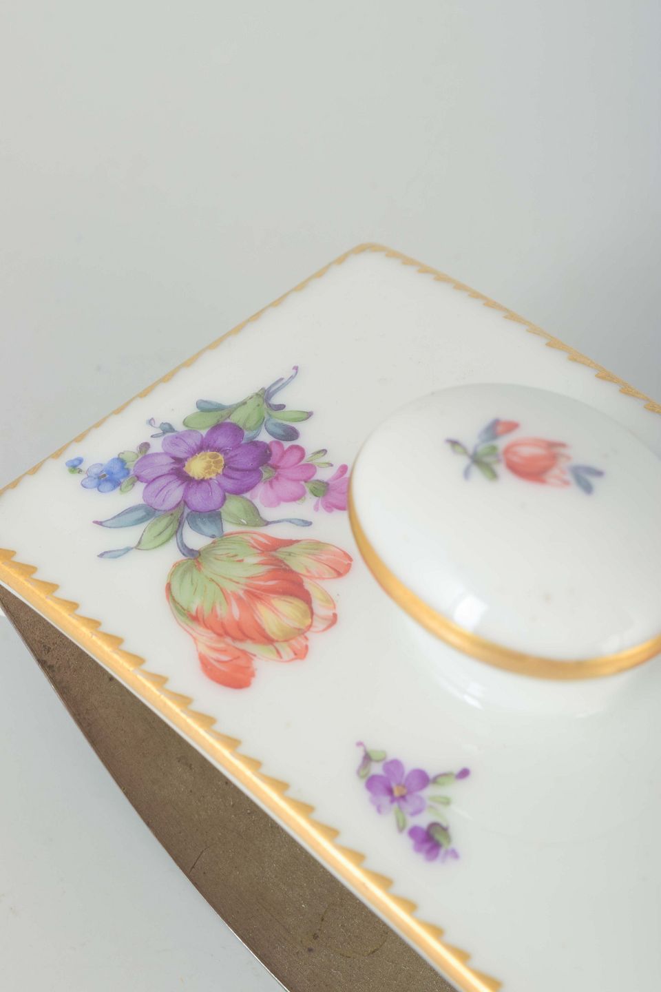 Royal Copenhagen was founded in 1775 under the patronage of Queen Juliane Marie and is renowned for its hand-painted porcelain series. The “Saxon Flower” pattern, introduced in the late 18th century, was inspired by contemporary botanical engravings. The series remained popular throughout the 19th and 20th centuries, and unique pieces such as desk accessories are among the rarer and highly sought-after collector’s items.
