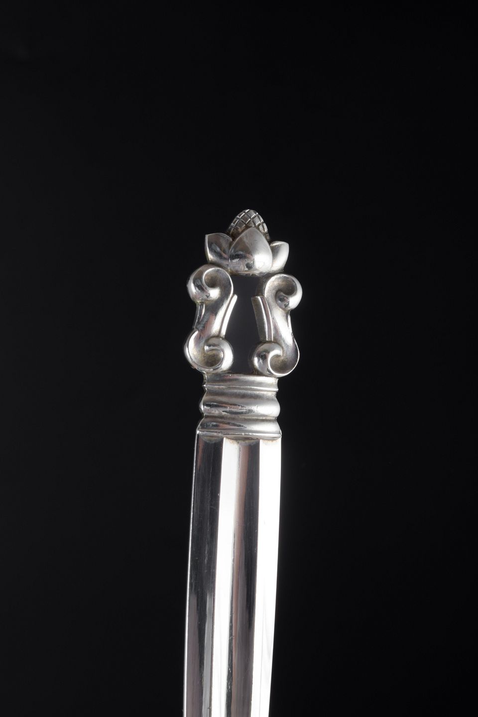 “Acorn” (Danish “Konge”) is one of Georg Jensen’s most iconic flatware patterns, created by Johan Rohde in 1915. The design combines classical forms and ornamentation with the modernist spirit of the time and remains one of the most sought-after silverware patterns among collectors and users worldwide.