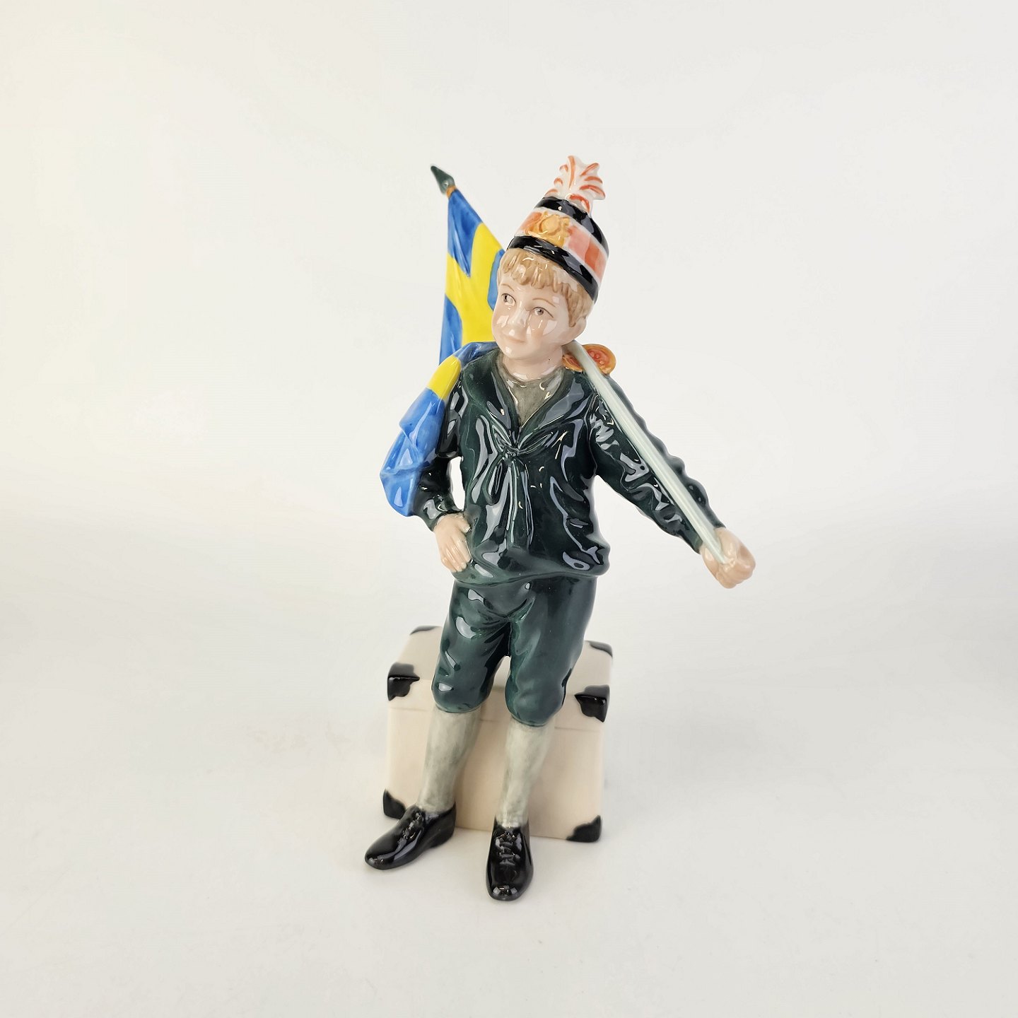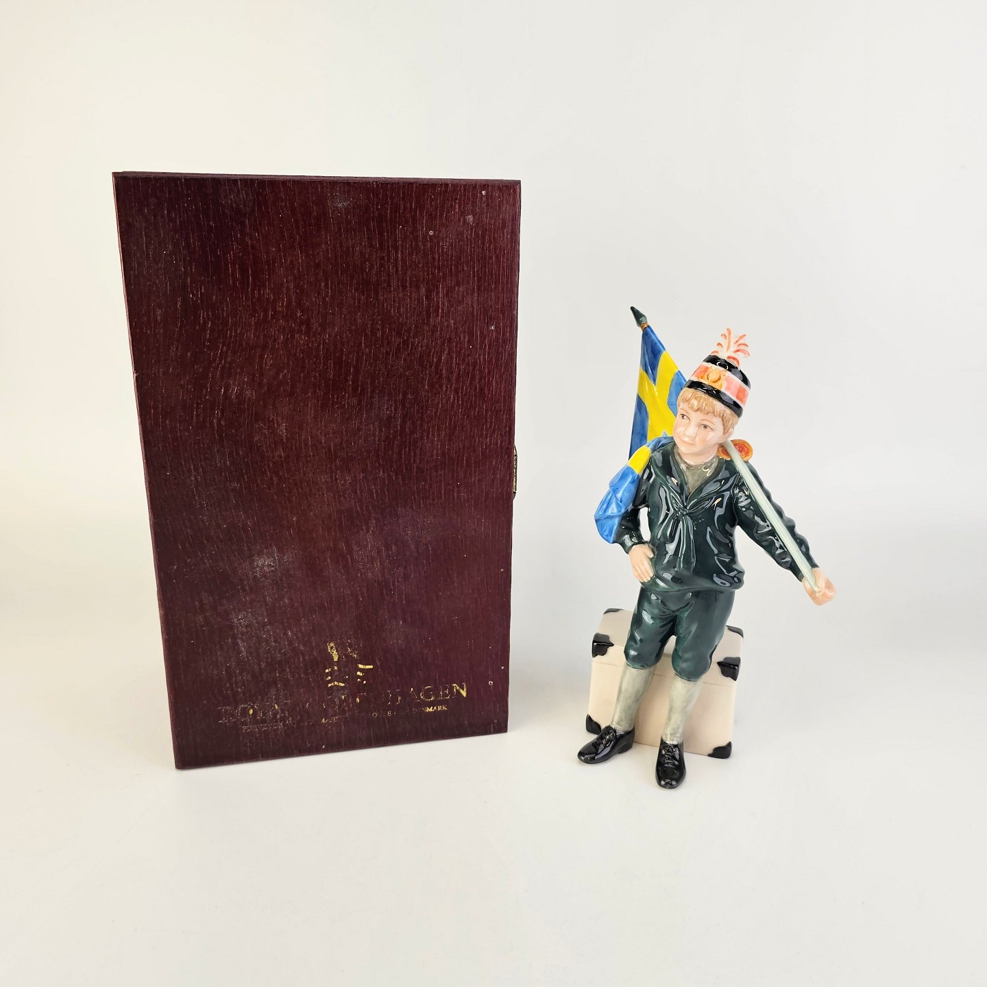 Pontus figur af porcelæn med motiv af en dreng med et svensk flagLimited edition, nummeret 178/7500