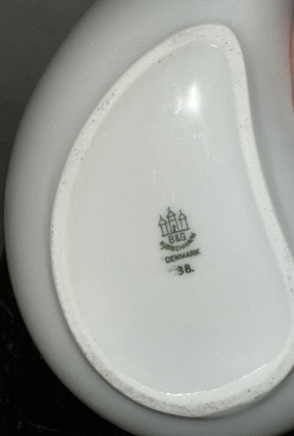 HENNING KOPPEL: Nyreformet skål i hvidt porcelæn fra Bing og Grøndahl. Fremstillet på B&G fabrikken. I god stand. Ingen skader eller reparationer. 1.sortering. Fabriksmærket på bunden sammen med modelnummer 38. Mål: H. 4,2 cm L. 16,4’cm B. 12 cmv/ Jesper Reutemann
