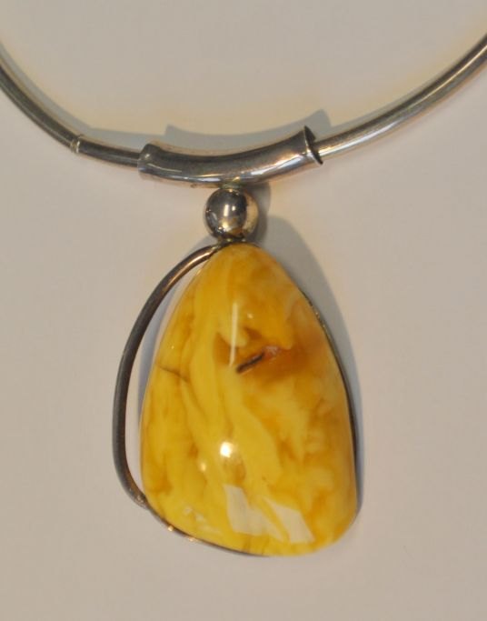 Large amber necklace, Bjarke Holtzmann, Nørre Nebel (after 2001), Denmark. Necklace in sterling silver with large polished milk amber piece. Stamped. Chain length: 38 cm. L.: 35 cm. Amber: 5.5 x 4 cm.