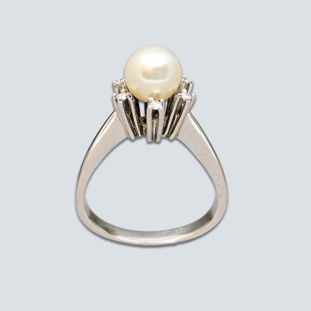 Ole Lynggaard; Ring of 18k white gold, set with diamonds and a pearl.Ring size around: 54-55.