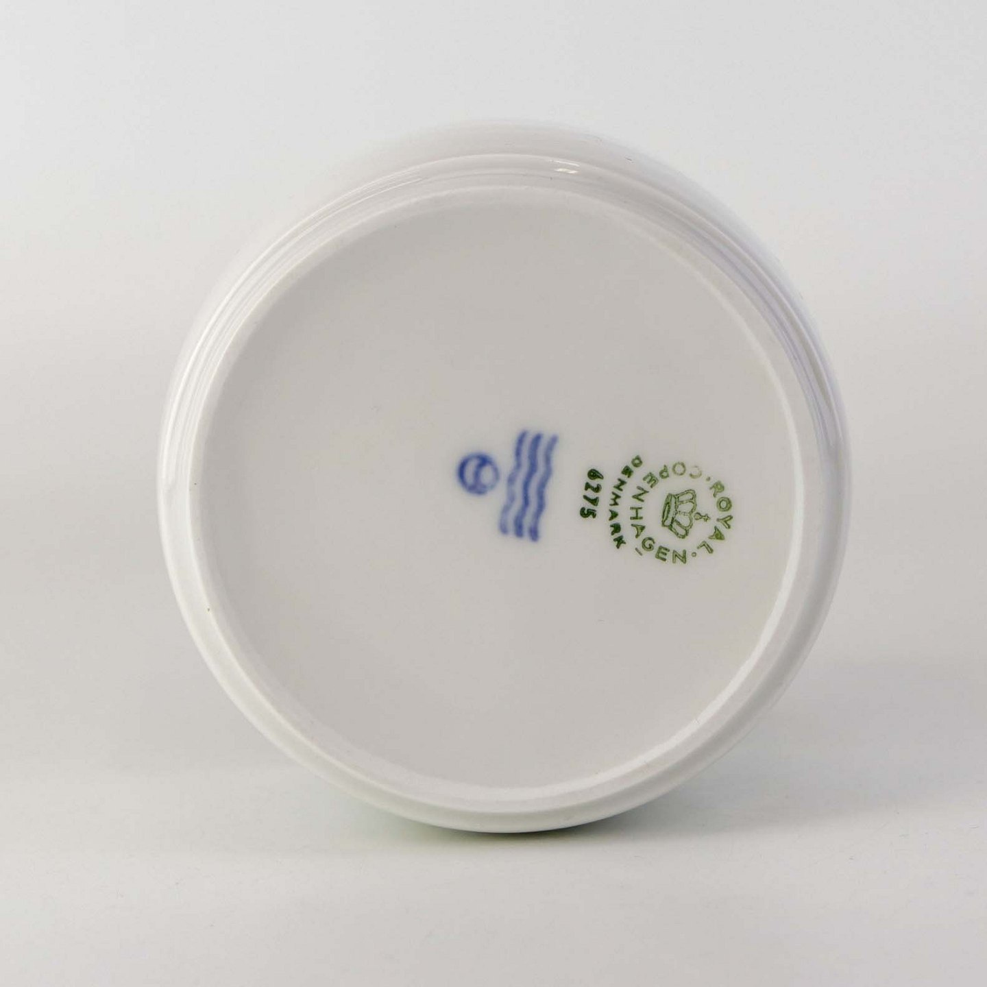 Service i glat hvidt porcelæn med dekoration i tynd rød streg.