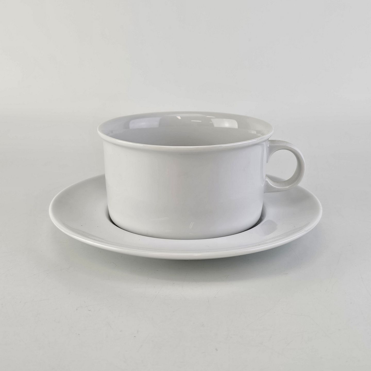 Kaffekop med underkop i glat hvidt porcelæn fra stellet Hvid DominoNr. 081