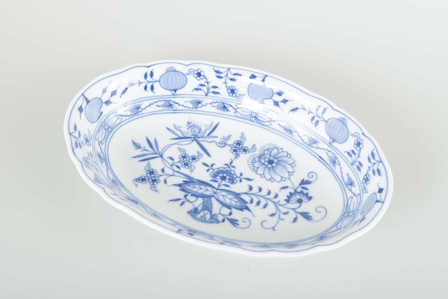 Oval bowl, “Blue Onion” pattern, mid-20th century.